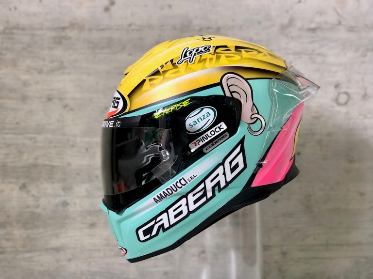 Caberg ha realizzato un casco commemorativo del campione. Dopo la gara di Imola sarà donato alla Fondazione Marco Pantani