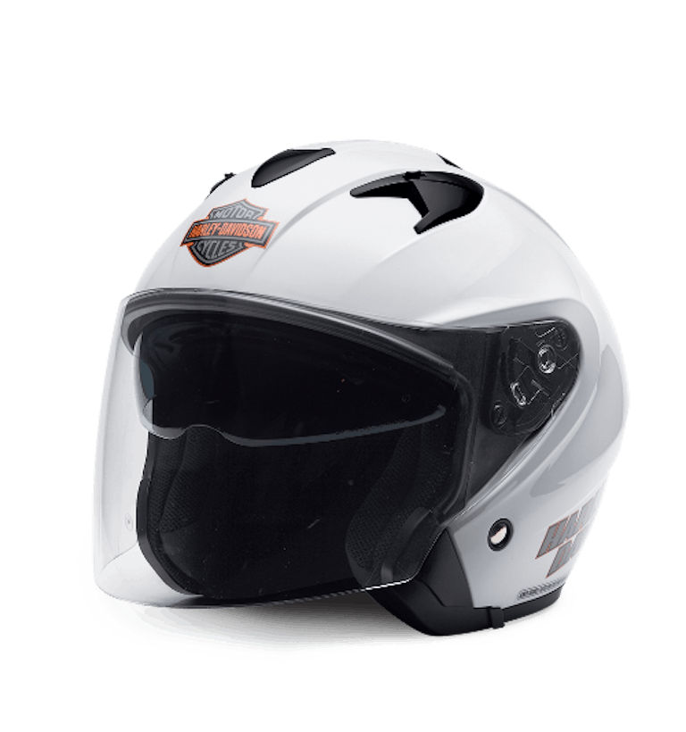 Casco 3/4 da uomo con doppia visiera, ideale sia con la pioggia che con il sole. Rigorosamente firmato Harley-Davidson