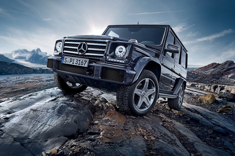 Versione a quattro ruote della straordinaria Mercedes G63 AMG 6×6, adotta il V8 4.0 biturbo benzina di derivazione AMG GT, “depotenziato” a 422 cv. L’assetto è rialzato a 45 cm dal suolo e le carreggiate sono allargate di 30 cm rispetto alle G standard.
