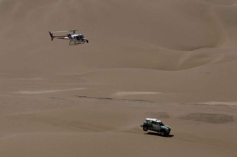 Tappa Arequipa – Nasca. Terreni veloci e tecnici, continui cambi di fondo e la navigazione diventa l’arma del successo di oggi. Marc Coma vince la tappa e torna leader nelle moto. Nelle auto l’americano Robby Gordon spinge forte ma la classifica conferma Peterhansel leader della generale.