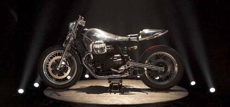 Le V7 II reinterpretate dai customizzatori nel programma tv di Sky sono esposte nello store milanese di via Broletto 13