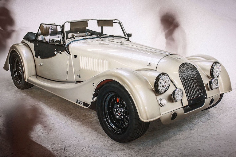 Grazie alle cure dello specialista inglese AR Motorsport la Morgan Plus 4 sfodera i muscoli: il 2.0 Cosworth eroga 225 cv. Sospensioni multilink al retrotreno.