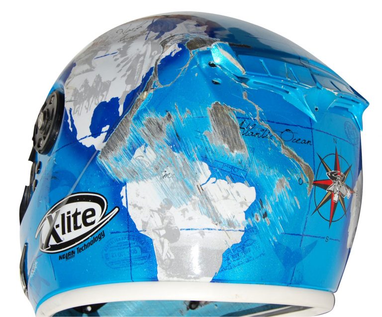 Il casco di Checa ha resistito molto bene all’impatto con l’asfalto di Phillip Island, al punto che Nolan Group ha reso pubbliche le immagini interne ed esterne della calotta