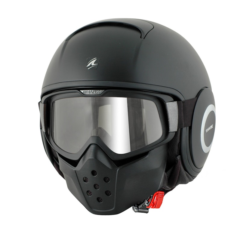 Shark lancia un nuovo casco dal look molto aggressivo dotato di mascherina e occhiali rimovibili e interno in fibra naturale di bamboo