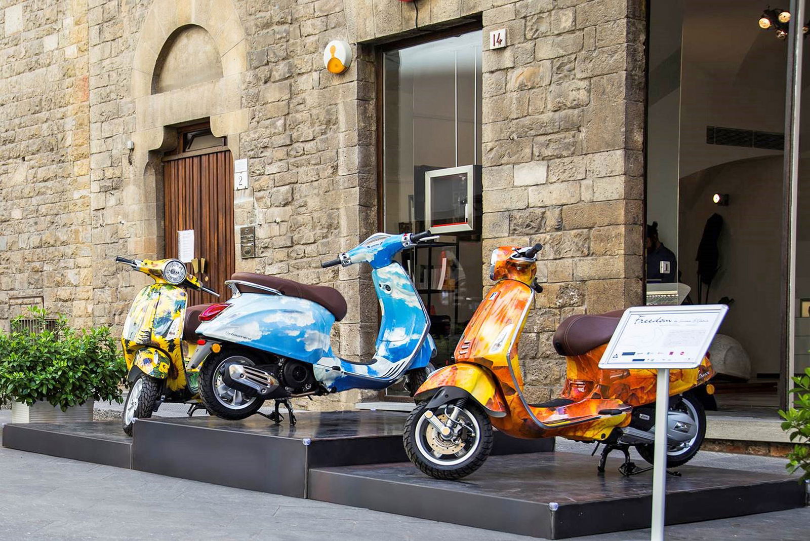 DOVE E QUANDO: Firenze, fino al 31 dicembreLe opere dell’artista americano Andy Warhol e una grande installazione di Simone d’Auria, con Vespa protagonista, si confrontano in un percorso allestito all’interno del Gallery Hotel Art (vicolo dell’Orto, 5) e sulla facciata dell’albergo fiorentino, dove sono state ancorate 12 Vespa.