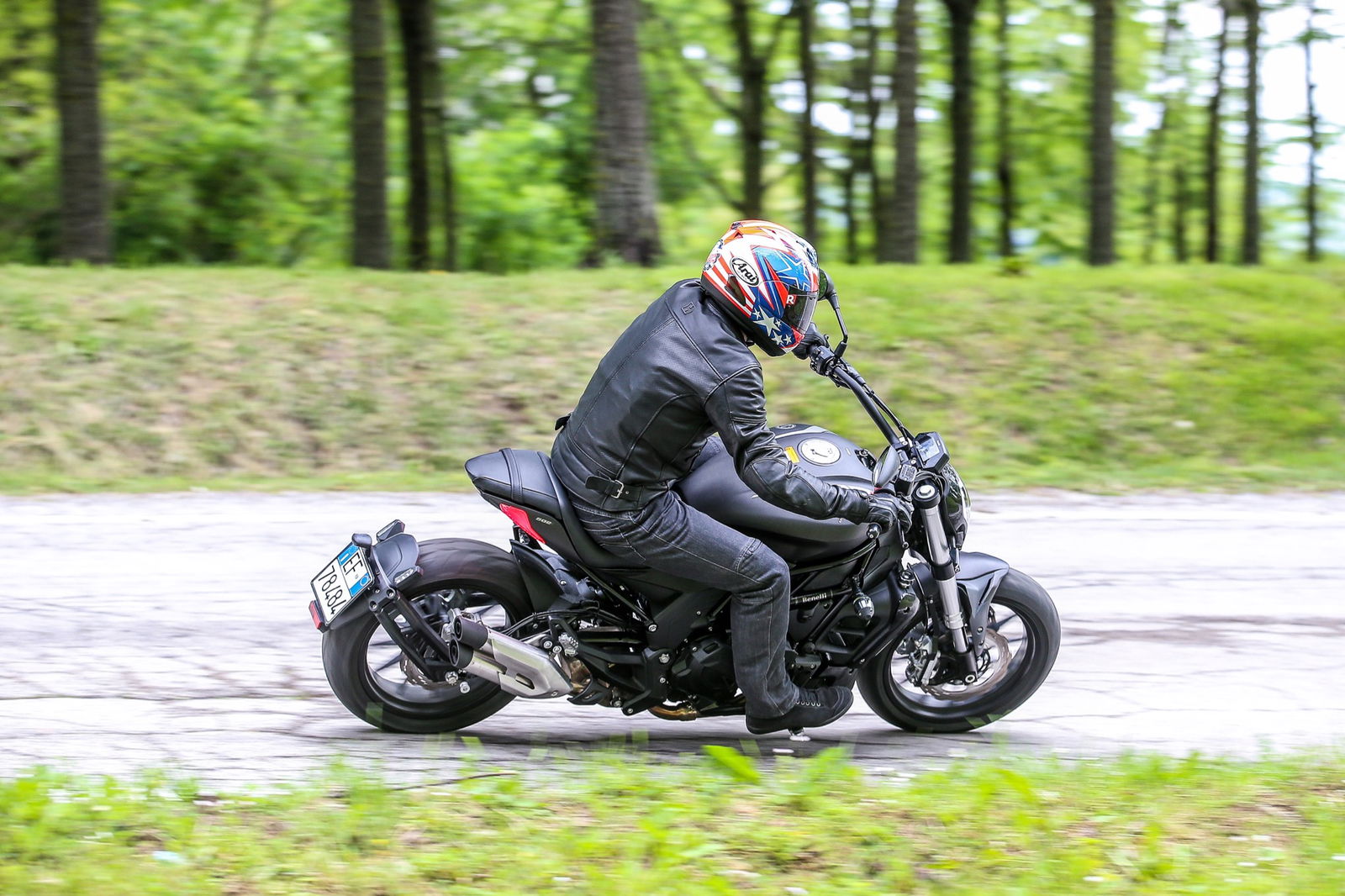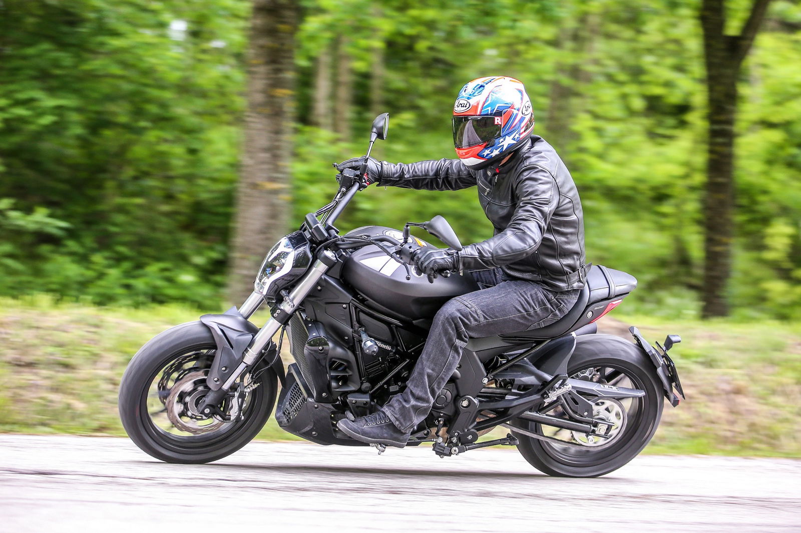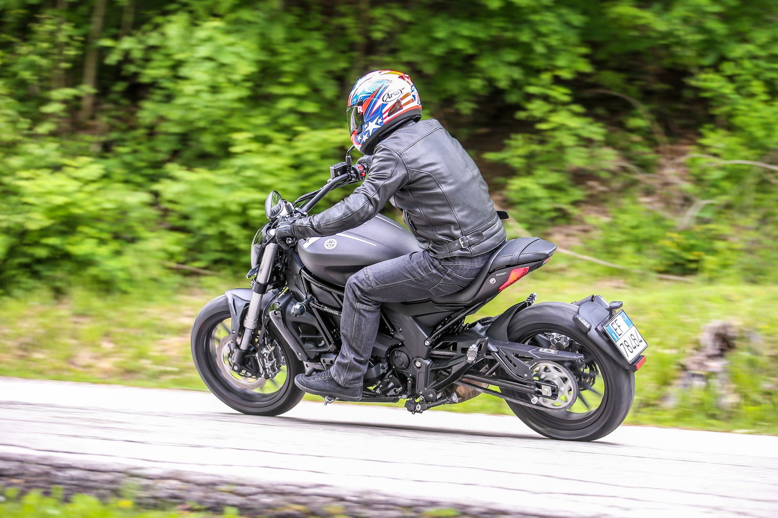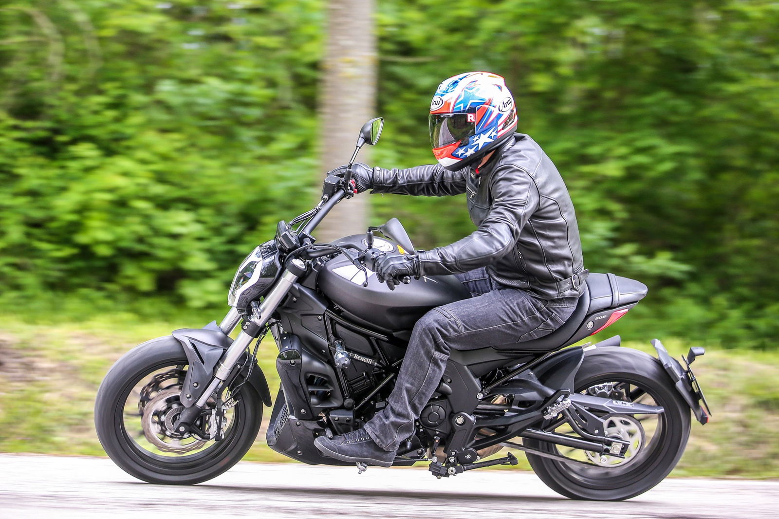 Il serbatoio da 21 litri, punto centrale del design, è appoggiato al telaio a traliccio in tubi di acciaio, a sua volta completato dal lungo forcellone. L’autonomia dichiarata è di oltre 500 chilometri, realistica considerati i consumi contenuti del bicilindrico in linea, che raggiunge la potenza massima di 47,6 cv (35 kW, ossia il limite per la guida con patente A2) a 8500 giri/min, con la curva di coppia che tocca il picco di 46 Nm a 6000 giri.L’impianto frenante, prodotto da una consociata del gruppo cinese che è proprietario della Benelli, si avvale di una coppia di dischi anteriori semi-flottanti di 280 mm di diametro con pinze a 4 pistoncini, mentre dietro il disco è di 240 mm con pinza a due pistoncini. La frizione multidisco in bagno d’olio viene azionata da una leva non regolabile nella distanza dalla manopola, al contrario di quella del freno anteriore. Le sospensioni sono incentrate sulla forcella con steli di 41 mm di diametro non regolabile e sul monoammortizzatore, personalizzabile nel solo precarico della molla.I materiali e l’assemblaggio sono ispirati alla funzionalità, come è normale che sia visto il prezzo finale, ma il motociclista che acquisterà la 502C non rimarrà deluso. Il colpo d’occhio è gratificante, per merito di finiture migliori di quanto il prezzo farebbe immaginare. Peccato per la misura 160/60 della copertura posteriore Pirelli Angel ST: con un 180 o un 200 mm l’impatto estetico sarebbe stato ben più appagante, senza reali conseguenze sulla maneggevolezza.