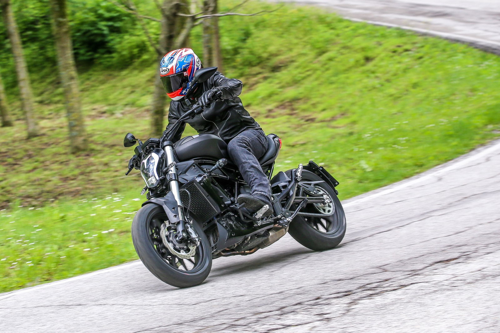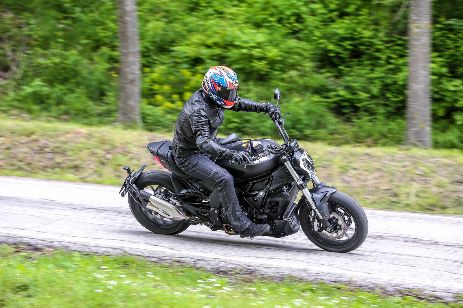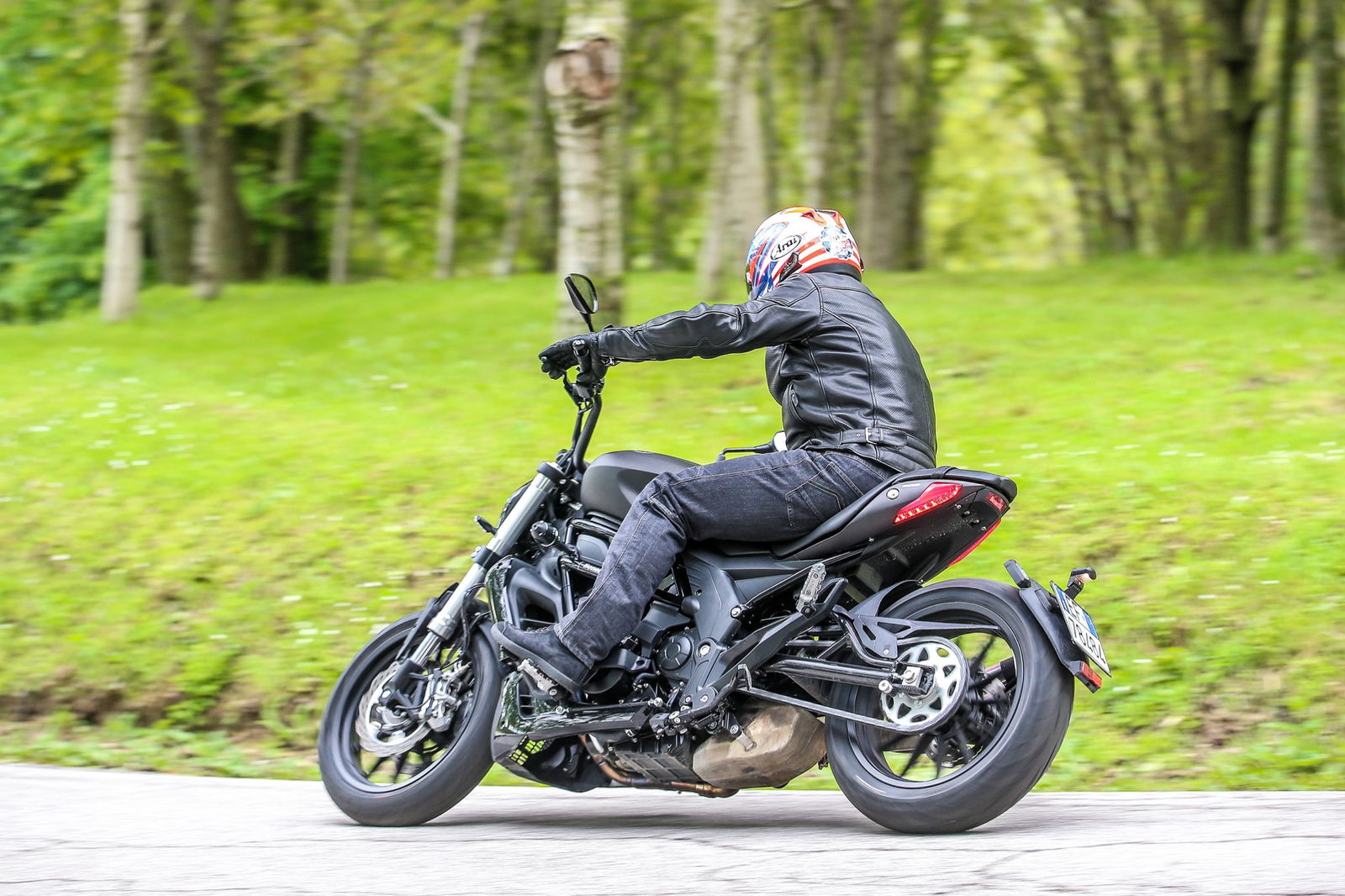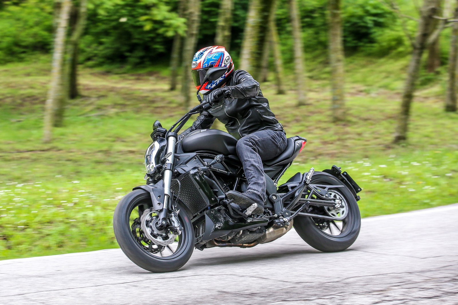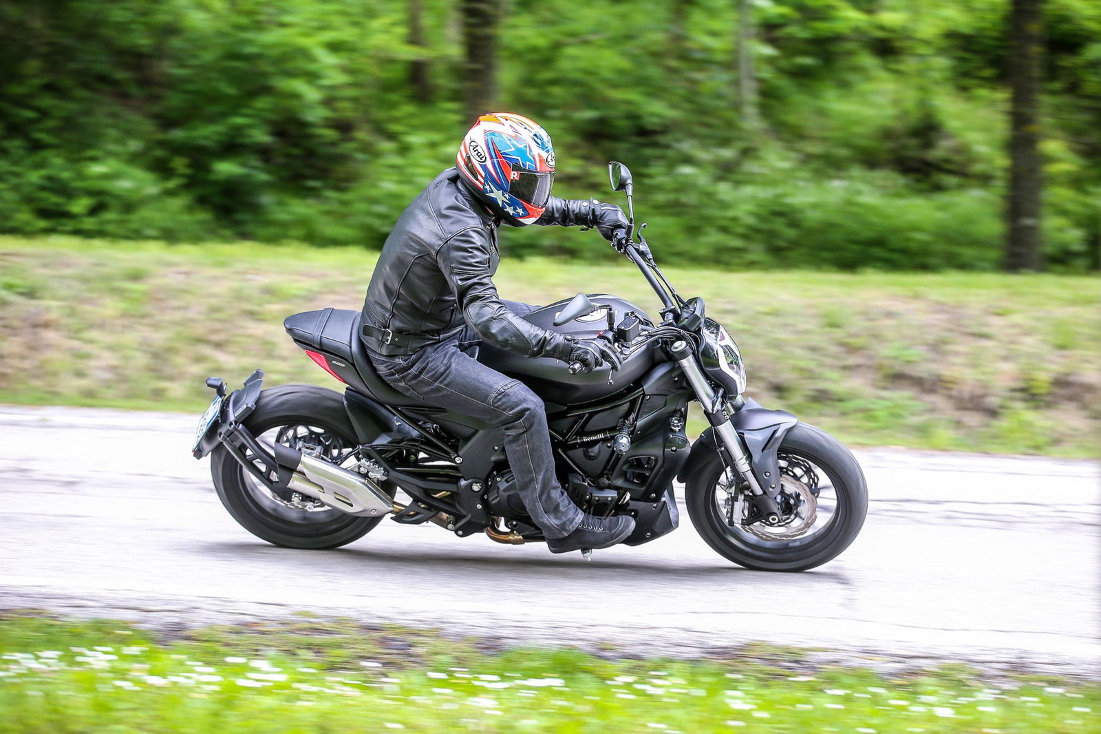 Il serbatoio da 21 litri, punto centrale del design, è appoggiato al telaio a traliccio in tubi di acciaio, a sua volta completato dal lungo forcellone. L’autonomia dichiarata è di oltre 500 chilometri, realistica considerati i consumi contenuti del bicilindrico in linea, che raggiunge la potenza massima di 47,6 cv (35 kW, ossia il limite per la guida con patente A2) a 8500 giri/min, con la curva di coppia che tocca il picco di 46 Nm a 6000 giri.L’impianto frenante, prodotto da una consociata del gruppo cinese che è proprietario della Benelli, si avvale di una coppia di dischi anteriori semi-flottanti di 280 mm di diametro con pinze a 4 pistoncini, mentre dietro il disco è di 240 mm con pinza a due pistoncini. La frizione multidisco in bagno d’olio viene azionata da una leva non regolabile nella distanza dalla manopola, al contrario di quella del freno anteriore. Le sospensioni sono incentrate sulla forcella con steli di 41 mm di diametro non regolabile e sul monoammortizzatore, personalizzabile nel solo precarico della molla.I materiali e l’assemblaggio sono ispirati alla funzionalità, come è normale che sia visto il prezzo finale, ma il motociclista che acquisterà la 502C non rimarrà deluso. Il colpo d’occhio è gratificante, per merito di finiture migliori di quanto il prezzo farebbe immaginare. Peccato per la misura 160/60 della copertura posteriore Pirelli Angel ST: con un 180 o un 200 mm l’impatto estetico sarebbe stato ben più appagante, senza reali conseguenze sulla maneggevolezza.