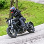La facilità di approccio e di guida sono i principali punti di forza della Benelli 502C: in pochi chilometri anche un neofita comincerà a vivere il gusto che solo le curve in moto sanno regalare. I più esperti, viceversa, si accorgeranno subito che non ha senso guidarla in modo troppo sportivo. Il motore bicilindrico in linea vanta un’erogazione regolare, che sfrutta un cambio basico ma efficace, pur dotato di rapporti tendenzialmente corti, sesta compresa. Sul lato del comfort, la posizione di guida è rilassata, con le pedane avanzate; la sella ben imbottita e comoda. Però le vibrazioni si avvertono chiaramente ai medi e alti regimi, soprattutto sulla sella stessa e sulle pedane. Più che adeguata alle prestazioni è la risposta dei freni, disco posteriore compreso; efficace la forcella non regolabile, che digerisce quasi tutto. Molto meno in forma si è rivelato il mono, la cui componente idraulica non è in grado di mitigare i colpi trasmessi dalle strade dissestate, penalizzando il comfort e anche la guida.Costruita con grande razionalità, la Benelli 502C promette e mantiene, rafforzando la strategia Benelli basata sulla spasmodica ricerca del miglior rapporto tra qualità e prezzo. Alle comprensibili obiezioni sul design ispirato ad altri ben più noti modelli, alle finiture ovviamente perfettibili e soprattutto alla costruzione cinese (che ormai è comunque sdoganata anche su marchi ben più blasonati), la Benelli 502C replica con il prezzo, più che concorrenziale, e con la considerazione che una parte di pubblico, nemmeno troppo piccola, è disposta a rinunciare a qualcosa pur di guidare, o di tornare a farlo. Al prezzo di una buona bici da corsa.