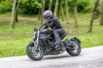 La facilità di approccio e di guida sono i principali punti di forza della Benelli 502C: in pochi chilometri anche un neofita comincerà a vivere il gusto che solo le curve in moto sanno regalare. I più esperti, viceversa, si accorgeranno subito che non ha senso guidarla in modo troppo sportivo. Il motore bicilindrico in linea vanta un’erogazione regolare, che sfrutta un cambio basico ma efficace, pur dotato di rapporti tendenzialmente corti, sesta compresa. Sul lato del comfort, la posizione di guida è rilassata, con le pedane avanzate; la sella ben imbottita e comoda. Però le vibrazioni si avvertono chiaramente ai medi e alti regimi, soprattutto sulla sella stessa e sulle pedane. Più che adeguata alle prestazioni è la risposta dei freni, disco posteriore compreso; efficace la forcella non regolabile, che digerisce quasi tutto. Molto meno in forma si è rivelato il mono, la cui componente idraulica non è in grado di mitigare i colpi trasmessi dalle strade dissestate, penalizzando il comfort e anche la guida.Costruita con grande razionalità, la Benelli 502C promette e mantiene, rafforzando la strategia Benelli basata sulla spasmodica ricerca del miglior rapporto tra qualità e prezzo. Alle comprensibili obiezioni sul design ispirato ad altri ben più noti modelli, alle finiture ovviamente perfettibili e soprattutto alla costruzione cinese (che ormai è comunque sdoganata anche su marchi ben più blasonati), la Benelli 502C replica con il prezzo, più che concorrenziale, e con la considerazione che una parte di pubblico, nemmeno troppo piccola, è disposta a rinunciare a qualcosa pur di guidare, o di tornare a farlo. Al prezzo di una buona bici da corsa.