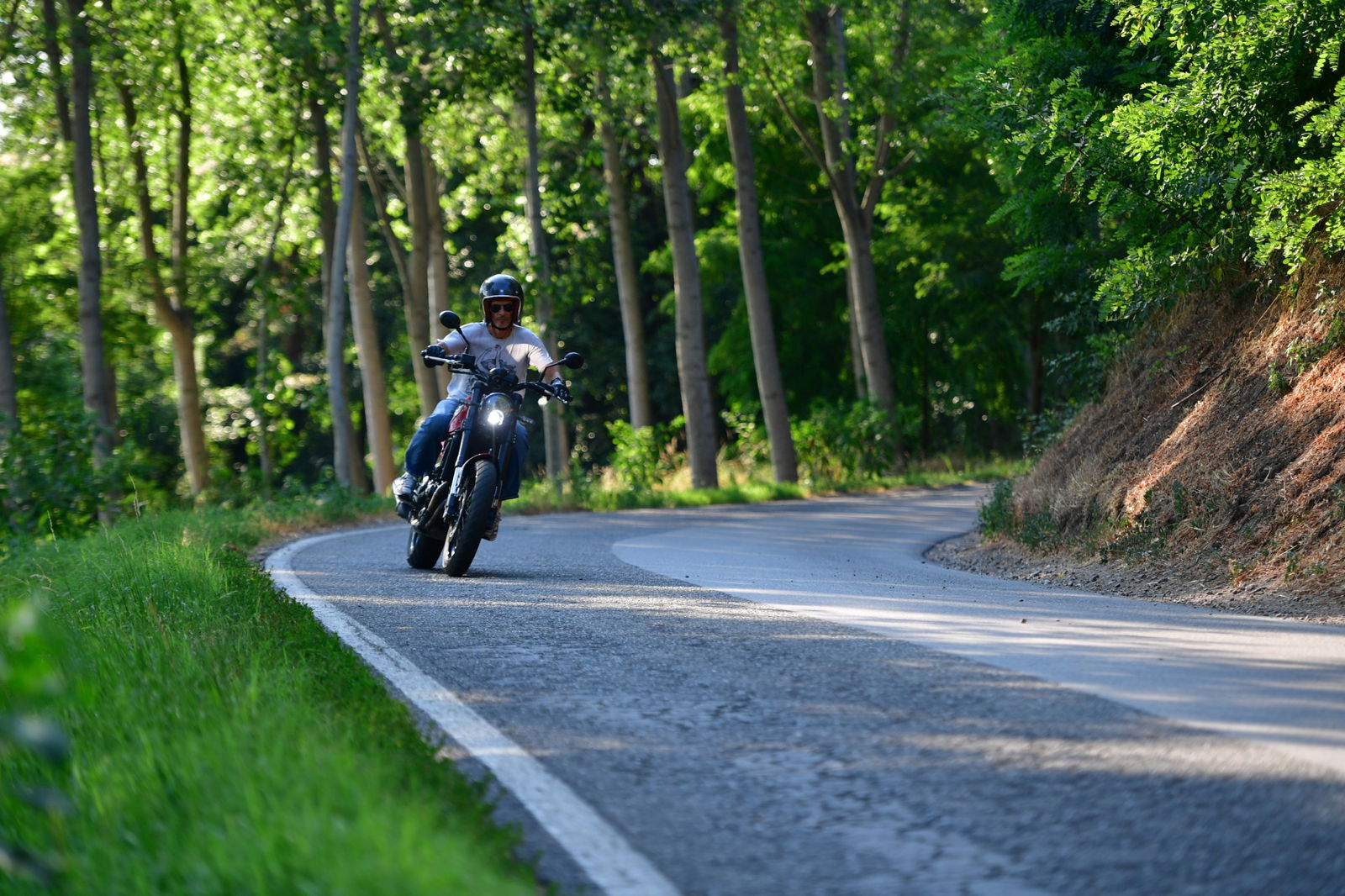 Se la madre di tutti i Leoncino mi era piaciuta, nella versione Trail guadagna qualche punto alla voce “eclettismo”. Non che le gomme semitassellate facciano miracoli, intendiamoci, però allargano ancora un poco l’orizzonte di chi impugna il manubrio, aprendo rotte meno battute e più polverose. Non pensate a sconnesse mulattiere, ma a strade bianche e carrarecce da affrontare in piedi sulle pedane. La ruota anteriore da 19″ non toglie nulla alle qualità dinamiche, che non sono e non vogliono essere da sportiva. Semmai, si fa apprezzare nella guida cittadina, dove il Leoncino Trail si disimpegna agile fra le auto, incurante di tombini, rotaie e pavé; e poi, non neghiamolo, i cerchi a raggi stanno proprio bene.Come già notato a suo tempo in sella al primogenito della famiglia, resta la sensazione di una sospensione posteriore un po’ morbida, che se da un lato privilegia il comfort, quando si vuole alzare un po’ il ritmo si preferirebbe più sostenuta. È comunque possibile regolarne il precarico e trovare il giusto compromesso.Nel frattempo, con il passare dei chilometri, il sole si è abbassato, il caldo lo ha seguito e i jeans si sono asciugati. Ora me la godo davvero e mi diverto a cercare le strade più piccole fra i campi, asfalto o terra fa lo stesso. L’importante è che guardino verso Ovest e mi portino dai pesciolini fritti dell’Osteria del Ponte.