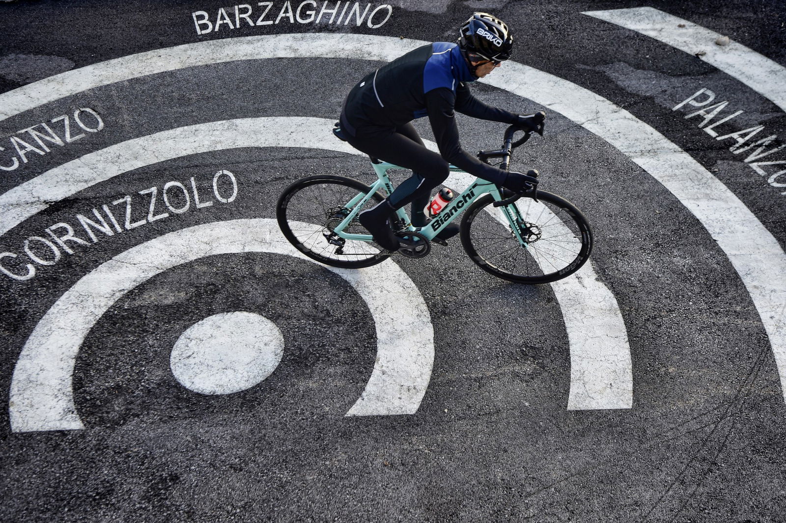 Quando è arrivata la Aria e-Road avevo bene in mente ciò che avrei voluto fare: togliermi qualche sfizio. In effetti è una delle motivazioni che spingono ad acquistare una bici da strada a pedalata assistita: c’è chi la usa per concedersi più chilometri e più dislivelli e chi, invece, vuole provare emozioni altrimenti sconosciute. Il muro lo avevo già fatto (una volta, con cadenze prossime al surplace e senza godermi nemmeno un metro di strada) e quindi mi sembrava l’occasione migliore per capire cosa significasse affrontarlo con “l’aiutino”. I ragazzi di Bianchi mi hanno spiegato che si può arrivare a coprire fino a 1.200 metri di dislivello, ma non è quello che oggi mi interessa.