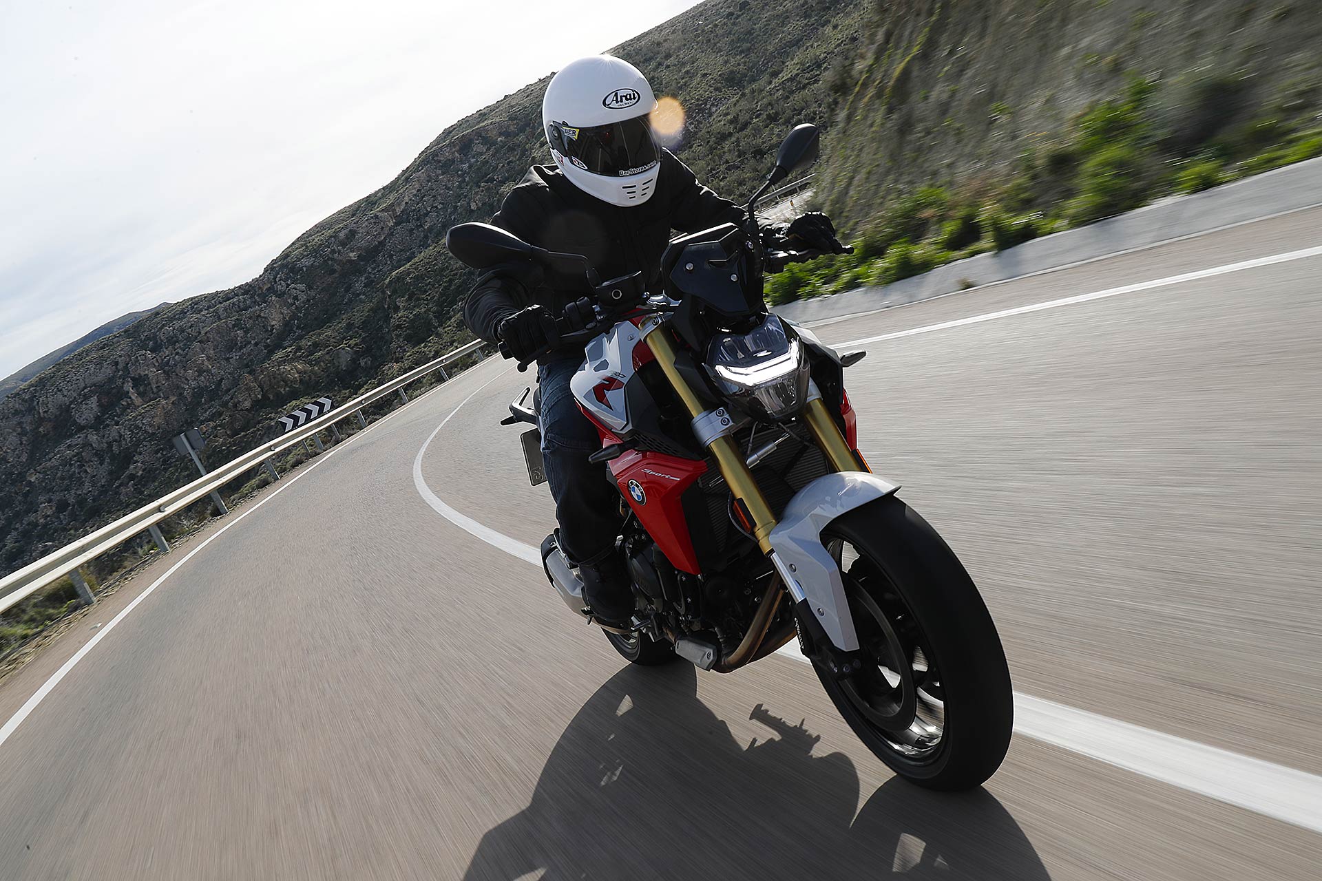 Il bicilindrico al pari del telaio, del forcellone e il diametro ruote è lo stesso della BMW F 900 XR, con il quale condivide anche il setting dell’elettronica. Gli stessi 105 cavalli sulla naked R funzionano meglio. Non sono di certo gli 8 kg in meno a fare la differenza – sfido i palati più fini ad accorgersene – quanto la diversa distribuzione del pesi e il comportamento delle sospensioni. La R ha sospensioni più rigide, meno confortevoli e più performanti, accolgono con piacere la sfida tra le curve e garantiscono una dignità di guida apprezzabile anche quando le si chiede impegno in ingresso curva con la leva del freno in mano.Al comportamento molto sincero della ciclistica non corrisponde una pari prontezza del motore a bassi. Pigro fino a 3.000 giri il twin BMW compensa con un buon allungo fino ad oltre gli 8.500 giri soglia oltre la quale non è meglio andare anche perchè a questa quota insorgono vibrazioni consistenti avvertibili soprattutto sul manubrio. Il suo bello? Dai 4 ai 6.500 giri ovviamente dove coppia e cavalli lavorano in sintonia e lasciando che la F 900 R scorra dentro le curve ci si può divertire. Peccato che il cambio non sia da lode; benché aiutato da quick shifter, che rende l’azione più rapida, non riesce a filtrare alcune imperfezioni percepibili nell’innesto dei rapporti ai bassi regimi e quando si scala marcia.Oggi la F 900 R è più matura ed è cresciuta al punto che non rappresenta più una moto di passaggio ma una compagna con cui condividere diverse stagioni in sella. Apprezzabile il prezzo contenuto al quale bisogna però aggiungere i Riding Mode Dynamic che rendono più “attiva” la guida e personalizzabile, le immancabili manopole riscaldabili e il cambio elettronico.