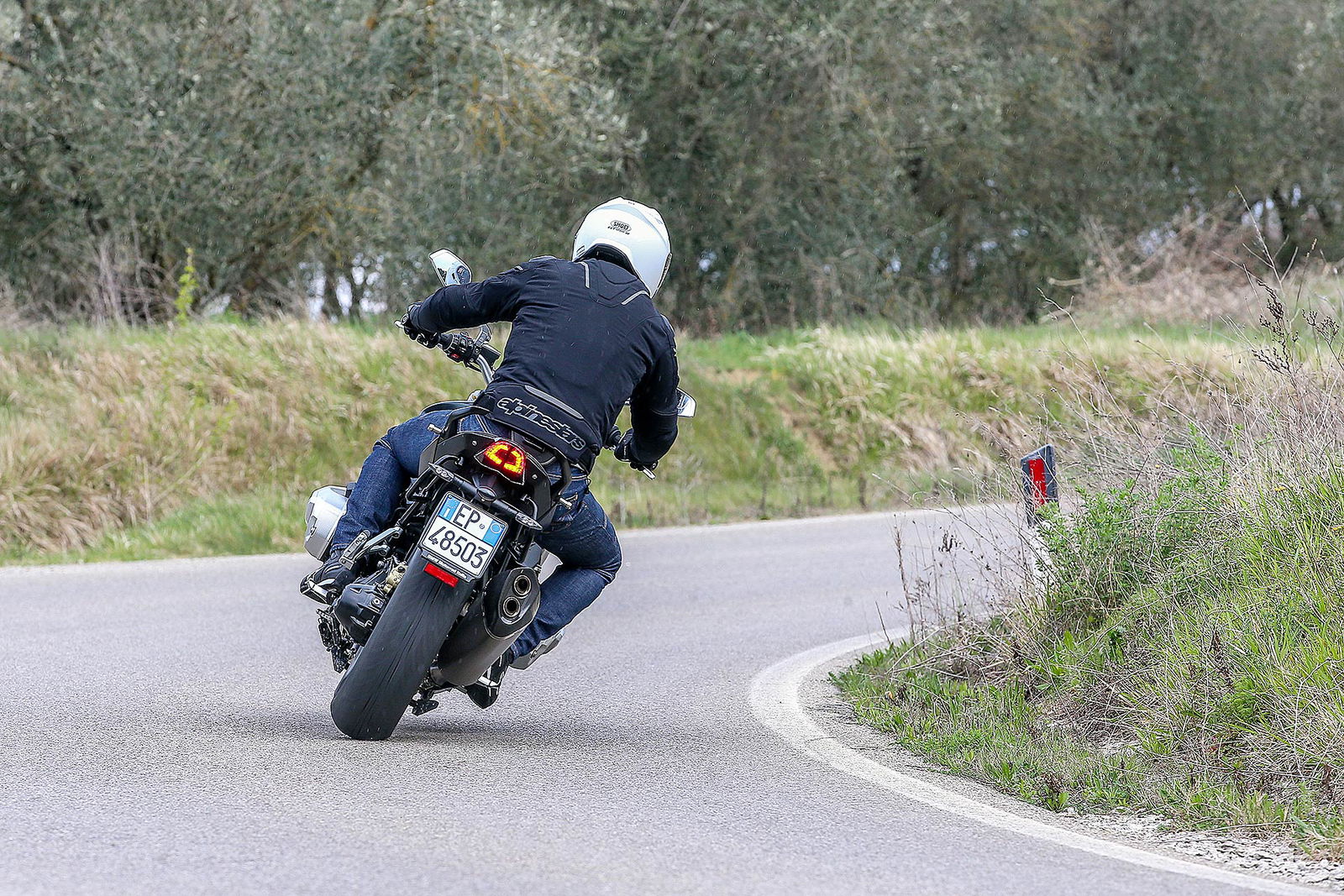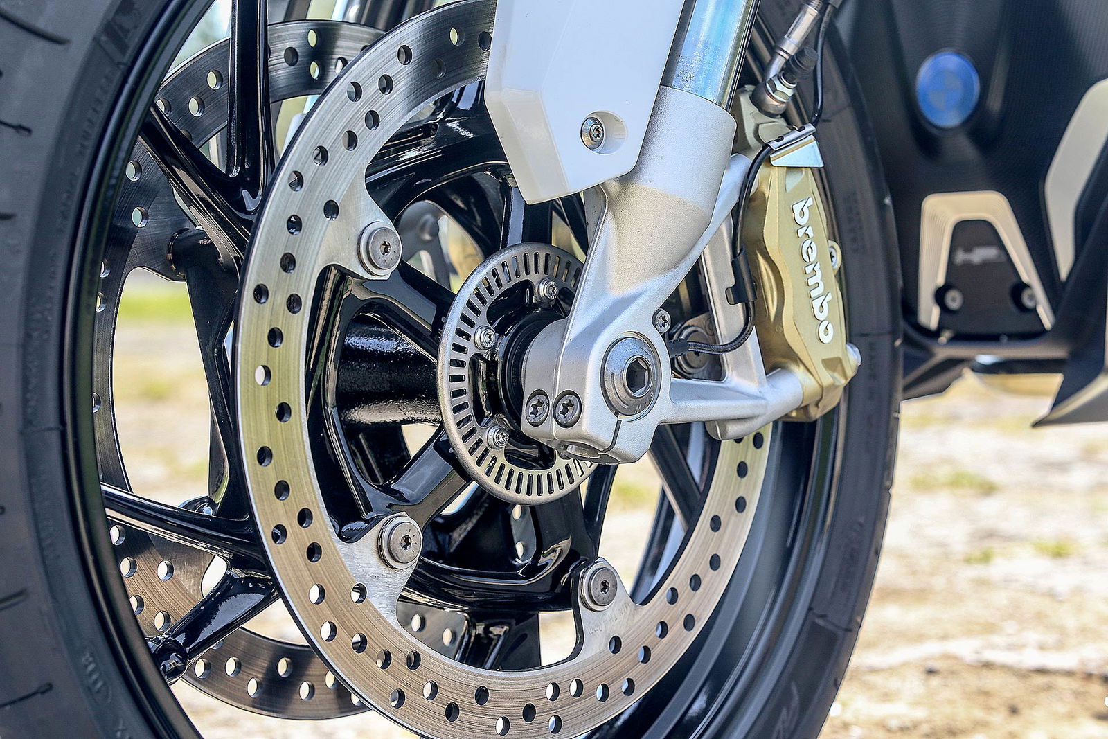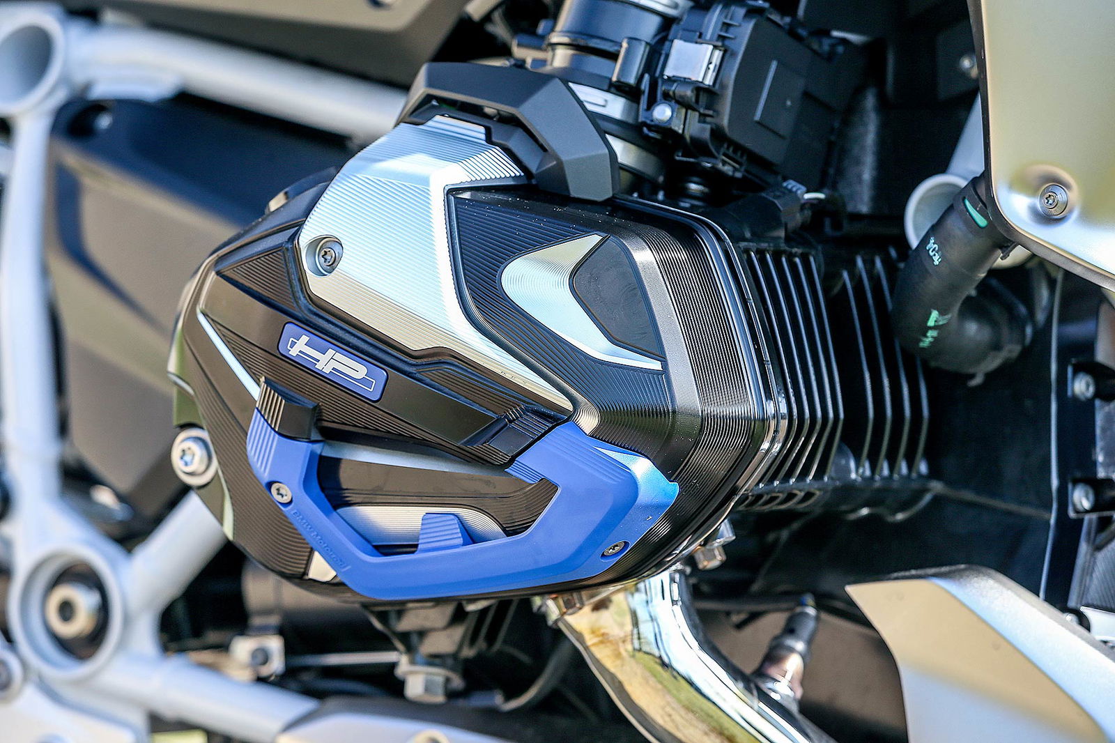 Riconosco di non trovarmi perfettamente a mio agio in sella, trovo il manubrio un po’ lontano e le pedane troppo vicine al piano della seduta. Scendo dalla “mia” R standard – sella alta 820 mm – per appropriarmi di una HP con la sella a 840 mm e un pacchetto di accessori estetici preziosi come gioielli. Bastano quei due centimetri in più per avere la percezione di un cambio immediato: il busto più alto guadagna qualcosa anche nel confronto del manubrio che comunque può essere ruotato indietro di qualche centimetro e permette un angolo leggermente più chiuso dei gomiti con le braccia meno tese. La seduta rialzata migliora anche l’angolo delle ginocchia – ora più aperto – e ringrazia anche feeling di guida perché si carica meglio forcella e avantreno. Consiglio in fase di acquisto di provare le diverse soluzioni di altezza per trovare quella più adatta alle proprie misure: per la cronaca sono alto 1.78 cm.