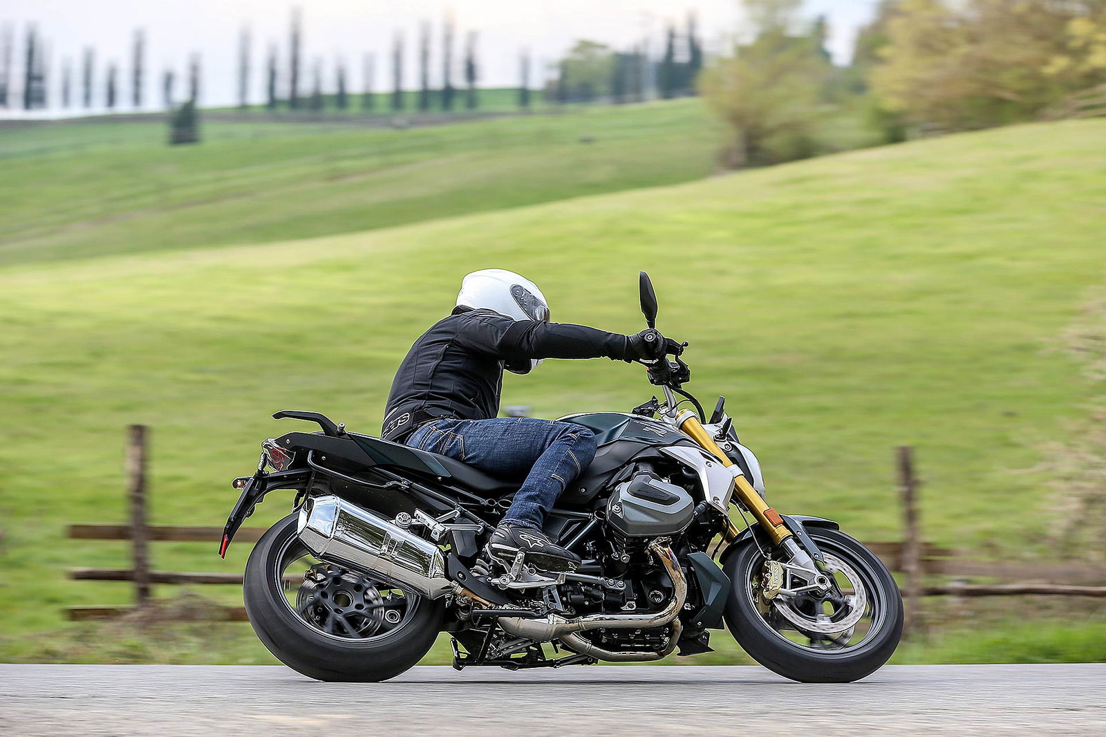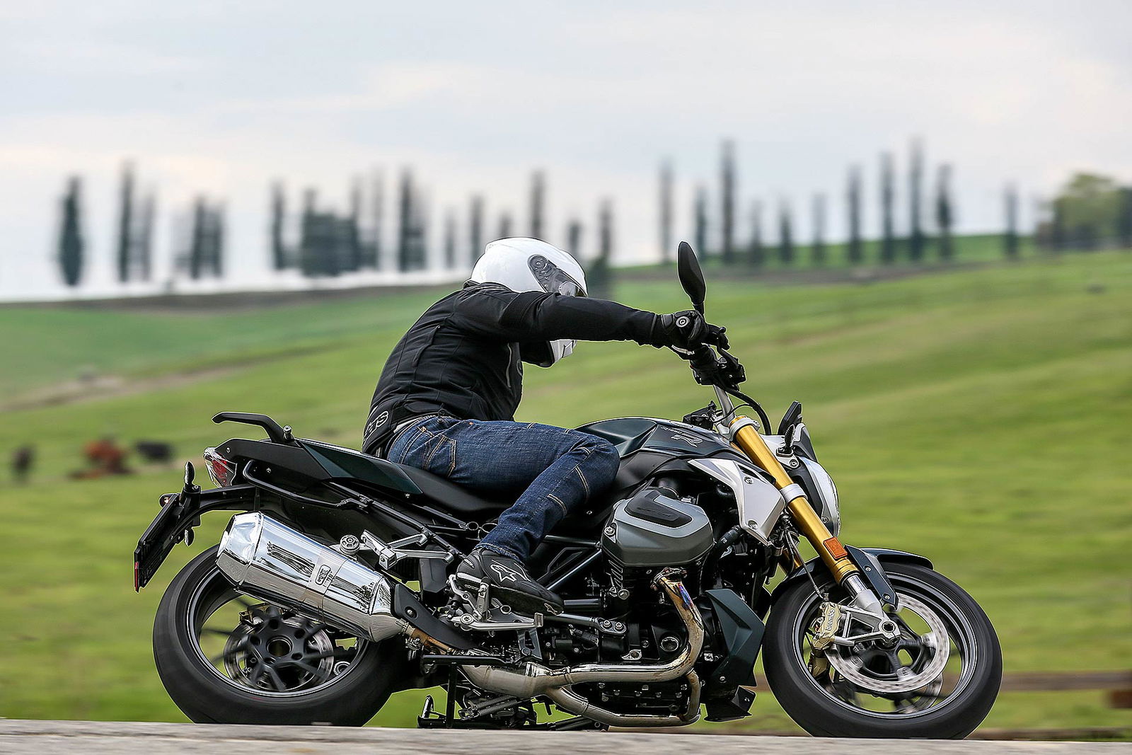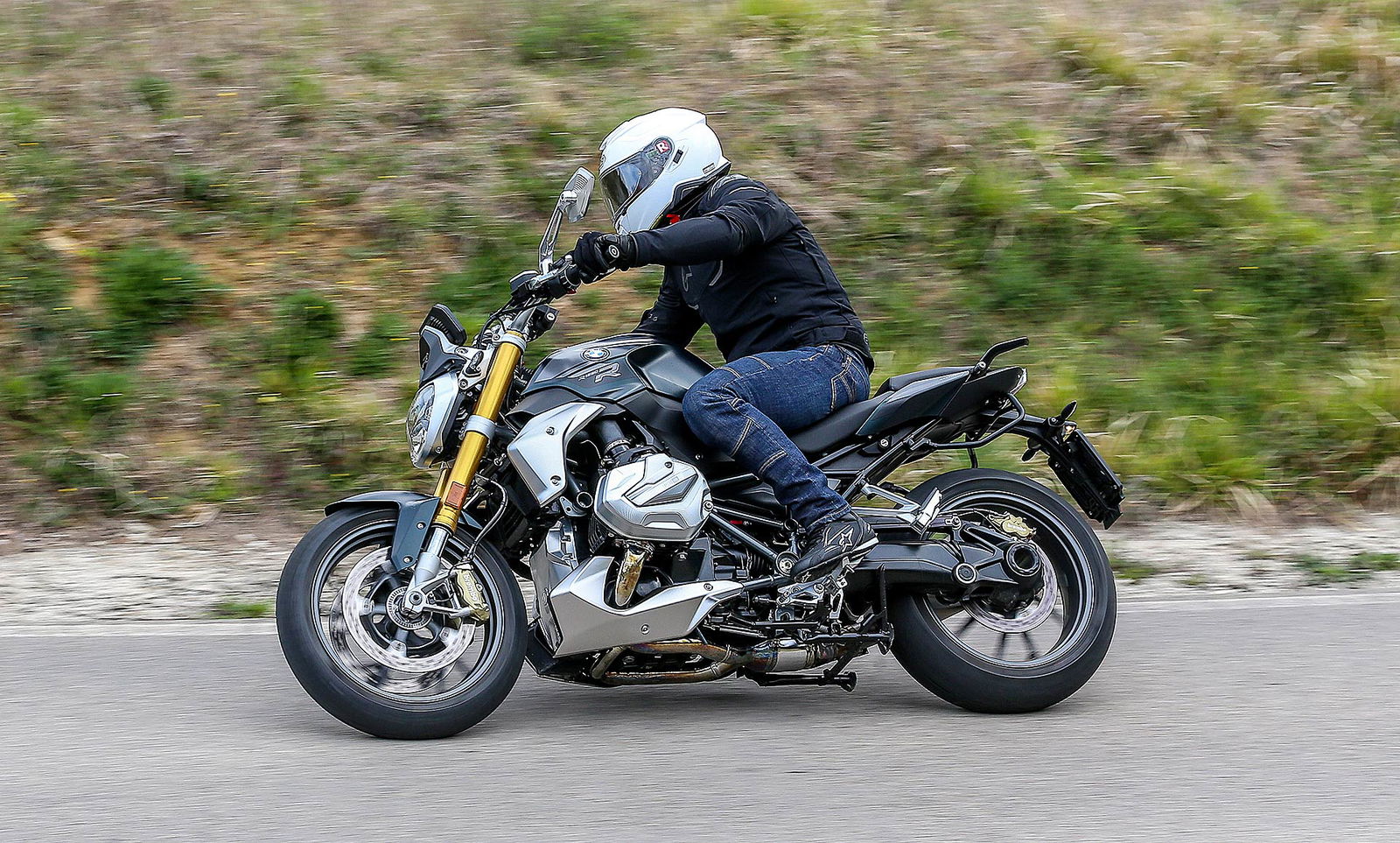 I comandi morbidi del cambio, della frizione e la sella confortevole si contrappongono con piacere al suono ruspante dello scarico Akrapovic disponibile nel catalogo. La R 1250 R non è più una naked svelta e paciosa di carattere ma un osso duro con cui dover fare i conti tra le curve anche se l’interasse è di 1.515 mm e l’angolo del cannotto di sterzo che punta a terra con 27,7 gradi di inclinazione. Credetemi: l’aspetto elegante nasconde ben altre prospettive di guida.
