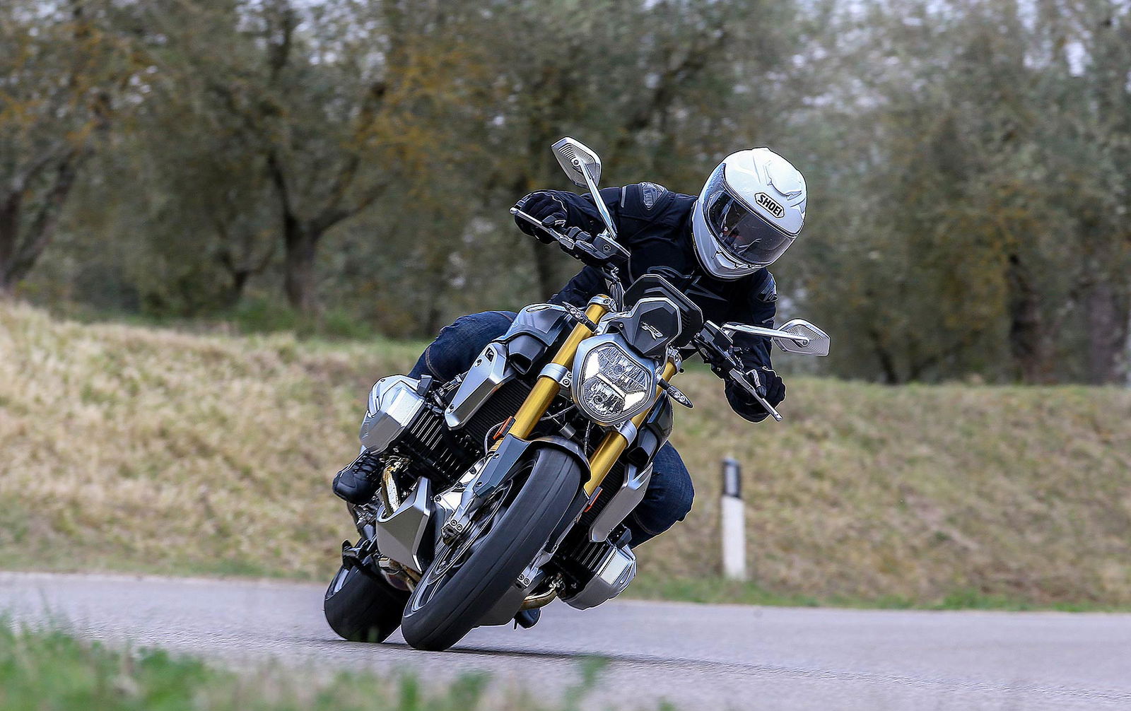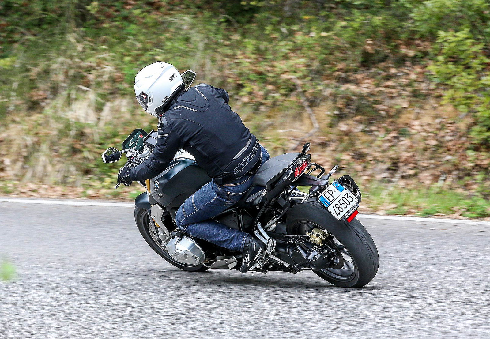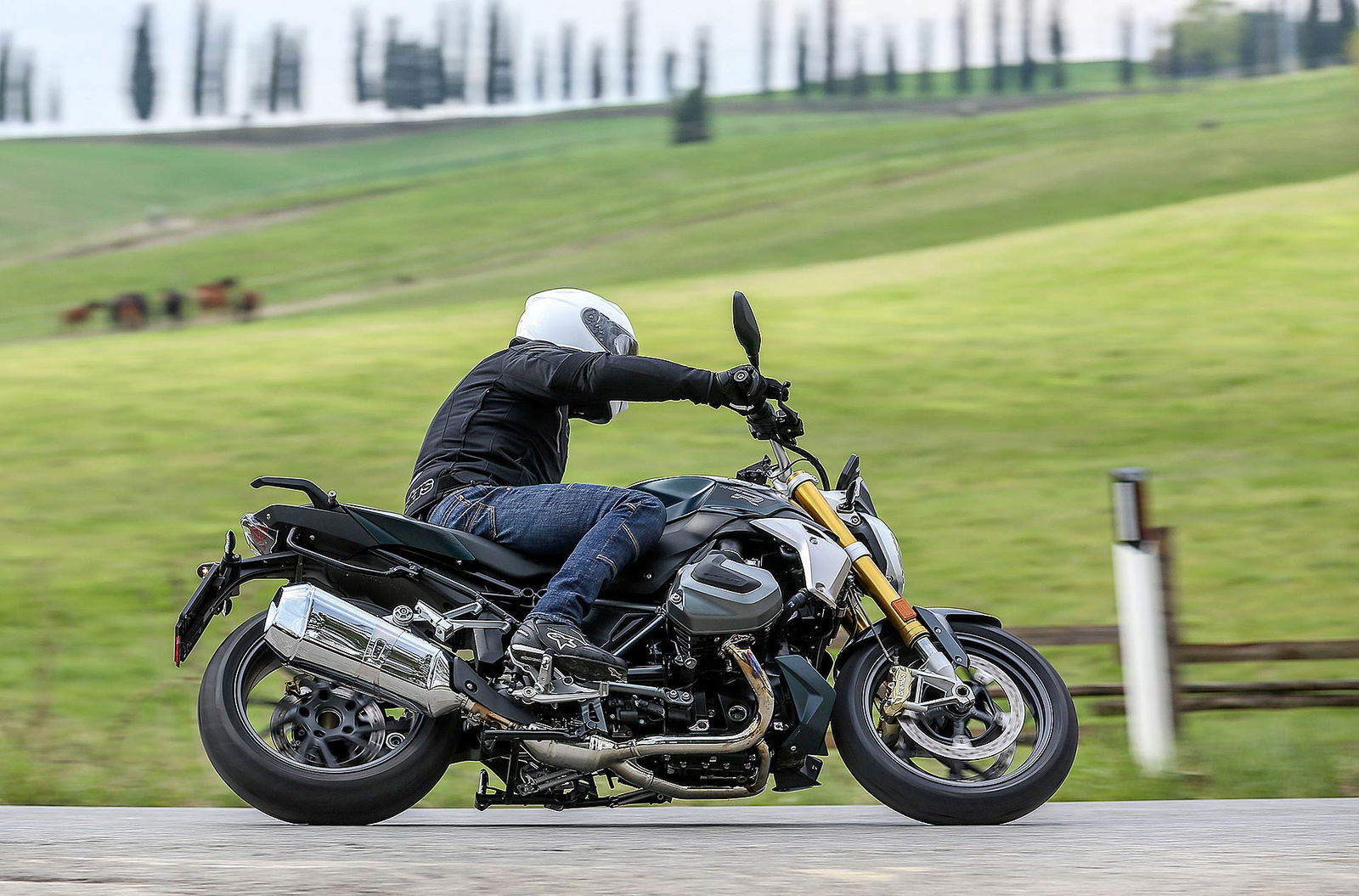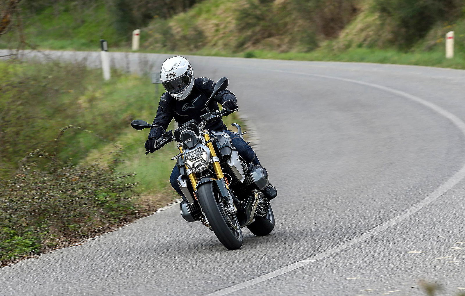 I comandi morbidi del cambio, della frizione e la sella confortevole si contrappongono con piacere al suono ruspante dello scarico Akrapovic disponibile nel catalogo. La R 1250 R non è più una naked svelta e paciosa di carattere ma un osso duro con cui dover fare i conti tra le curve anche se l’interasse è di 1.515 mm e l’angolo del cannotto di sterzo che punta a terra con 27,7 gradi di inclinazione. Credetemi: l’aspetto elegante nasconde ben altre prospettive di guida.