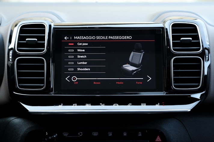 Il comfort a bordo è elevato, grazie anche all’ottima insonorizzazione e al gran lavoro delle sospensioni PHC con smorzatori idraulici progressivi, che al posto dei tamponi di fine corsa sfruttano degli smorzatori idraulici, e che garantiscono un assetto morbido (ma non cedevole). Anche il comportamento del motore è in linea con questa attitudine: spinge deciso ma è equilibrato e mai ruvido, coadiuvato dal cambio automatico EAT8 a 8 marce, molto fluido e rapido nel passaggi di rapporto. Lo sterzo è molto leggero, caratteristica che da un lato ne fa un ottimo alleato in città e nelle manovre, ma dall’altro limita un po’ le qualità dinamiche quando si guida “allegri”.Anche se non è certo la guida sportiva che deve cercare chi sceglie di mettersi al volante della Citroën C5 Aircross, poco incline a questa situazione, anche a causa dei trasferimenti di carico che diventano più percepibili con l’aumentare dell’andatura.La sua vocazione è dispensare comfort e portare alla meta i passeggeri (e tanti bagagli) in totale relax, cosicché l’avventura possa cominciare non appena scesi dall’auto.