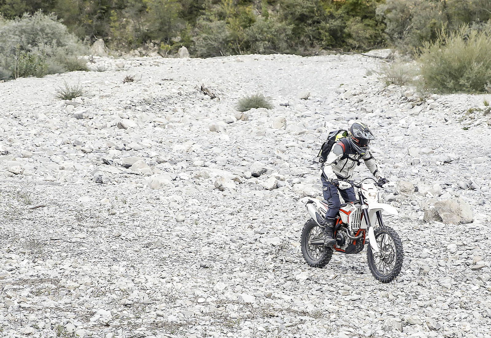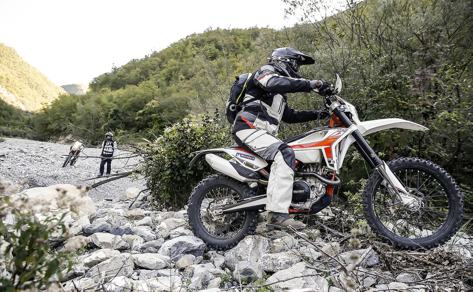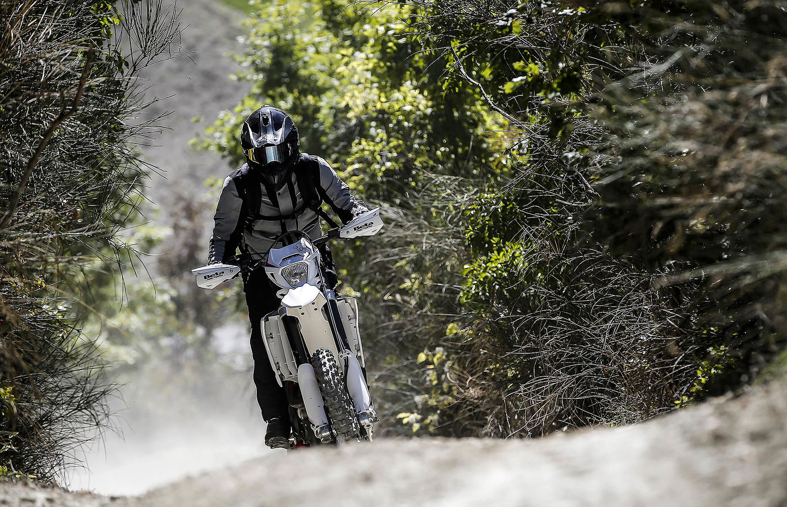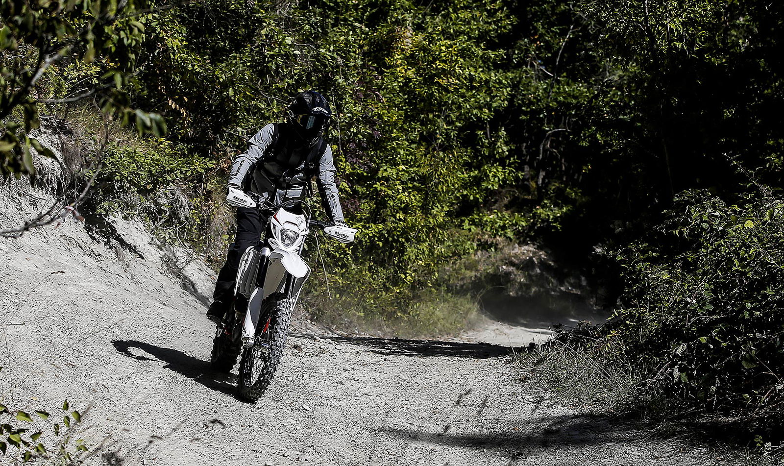 La Beta RR 350 è l’unica del nostro confronto con questa cilindrata: 350 centimetri cubi perché la casa toscana parte da questa cubatura che però sia ben chiaro sta di diritto nella categoria perché riconosciuta anche nel campionato mondiale enduro: le 250 quattro tempi e le 350 corrono insieme.Telaio in acciaio al cromo-molibdeno, sospensioni completamente regolabili della ZF con forcella da 48 mm di diametro e mono ammortizzatore con leveraggio progressivo. Interasse da 1.490 mm escursione della ruota anteriore di 295 mm e posteriore di 290; disco da 260 mm con pinza flottante e dietro da 240 mm. Il motore a iniezione elettronica a quattro valvole in titanio, il serbatoio da 9 litri e il peso dichiarato è di 107,5 kg a secco con la sella alta 940 mm.