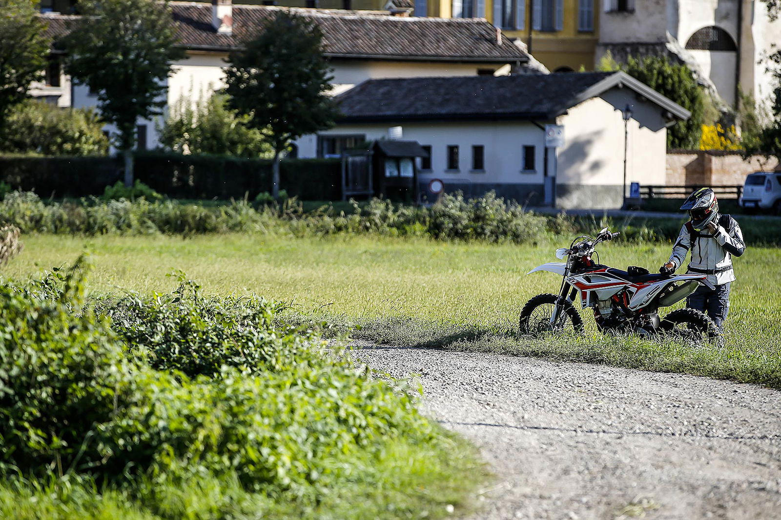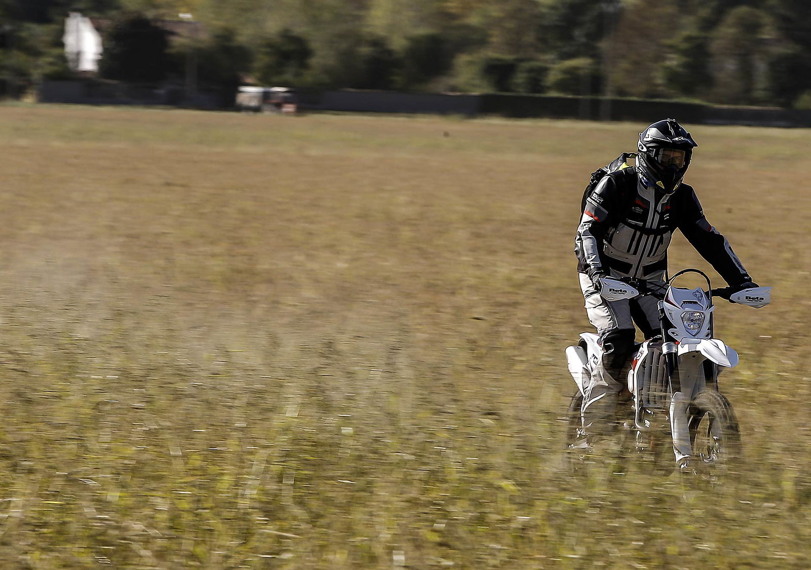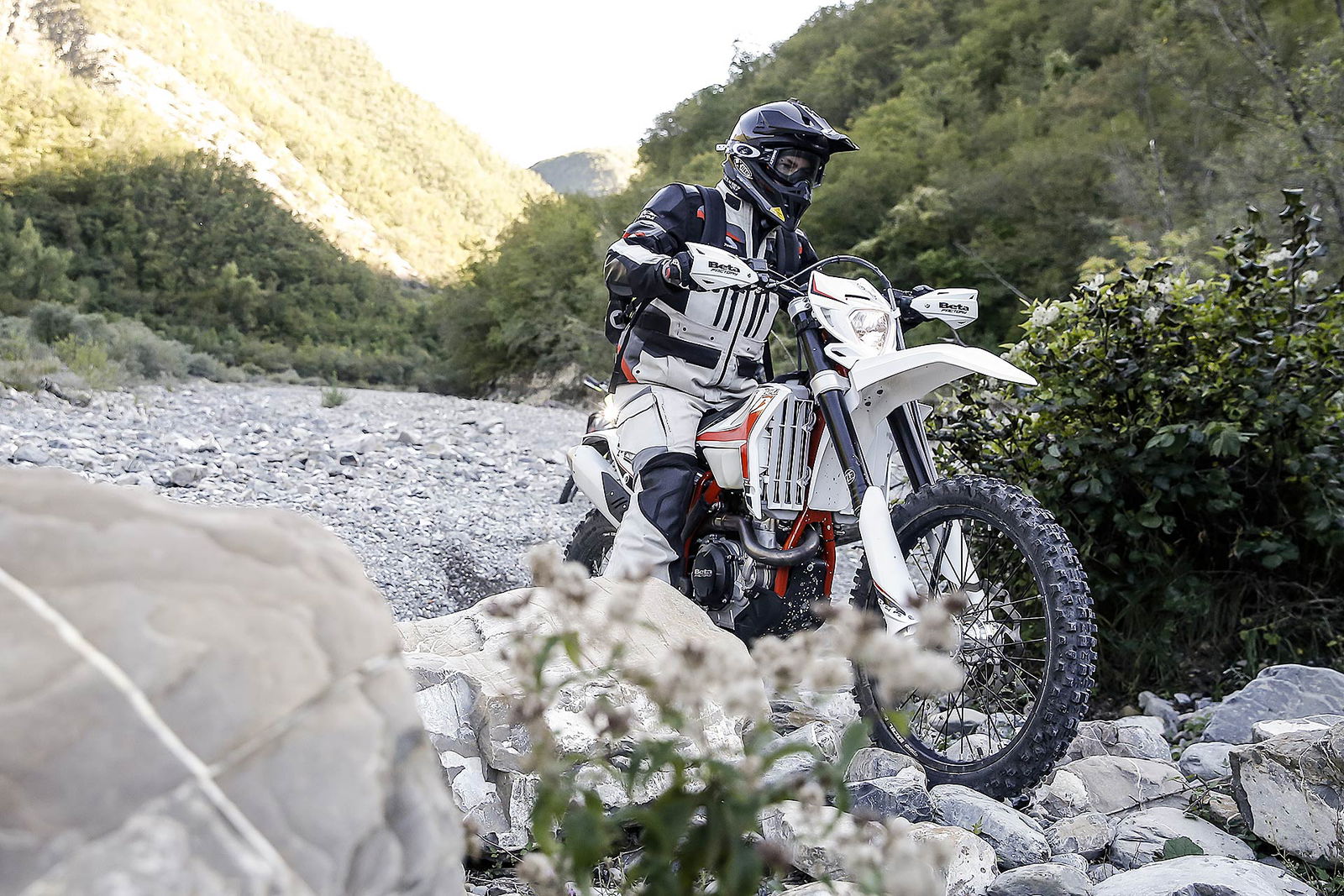 La Beta ha un vantaggio oggettivo nel motore, che si ripercuote positivamente nella guida. Il mono è super reattivo, ha un bel colpo in canna, ma a differenza delle cilindrate maggiori “pistona” meno: a gas chiuso e in ingresso curva l’inerzia del motore non spinge in avanti. La posizione in sella è tradizionale, la zona dei convogliatori dei radiatori è abbastanza snella. La scelta delle set up delle sospensioni un po’ vecchia scuola: forcella alta e sedere basso per avere buona trazione. Migliorabili i blocchetti elettrici e leve al manubrio.