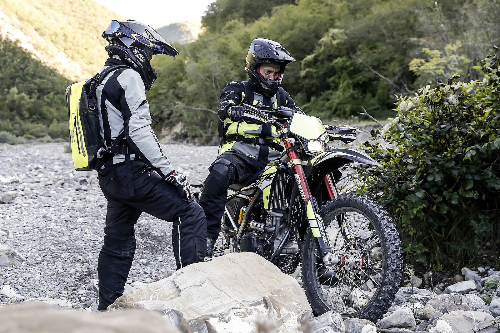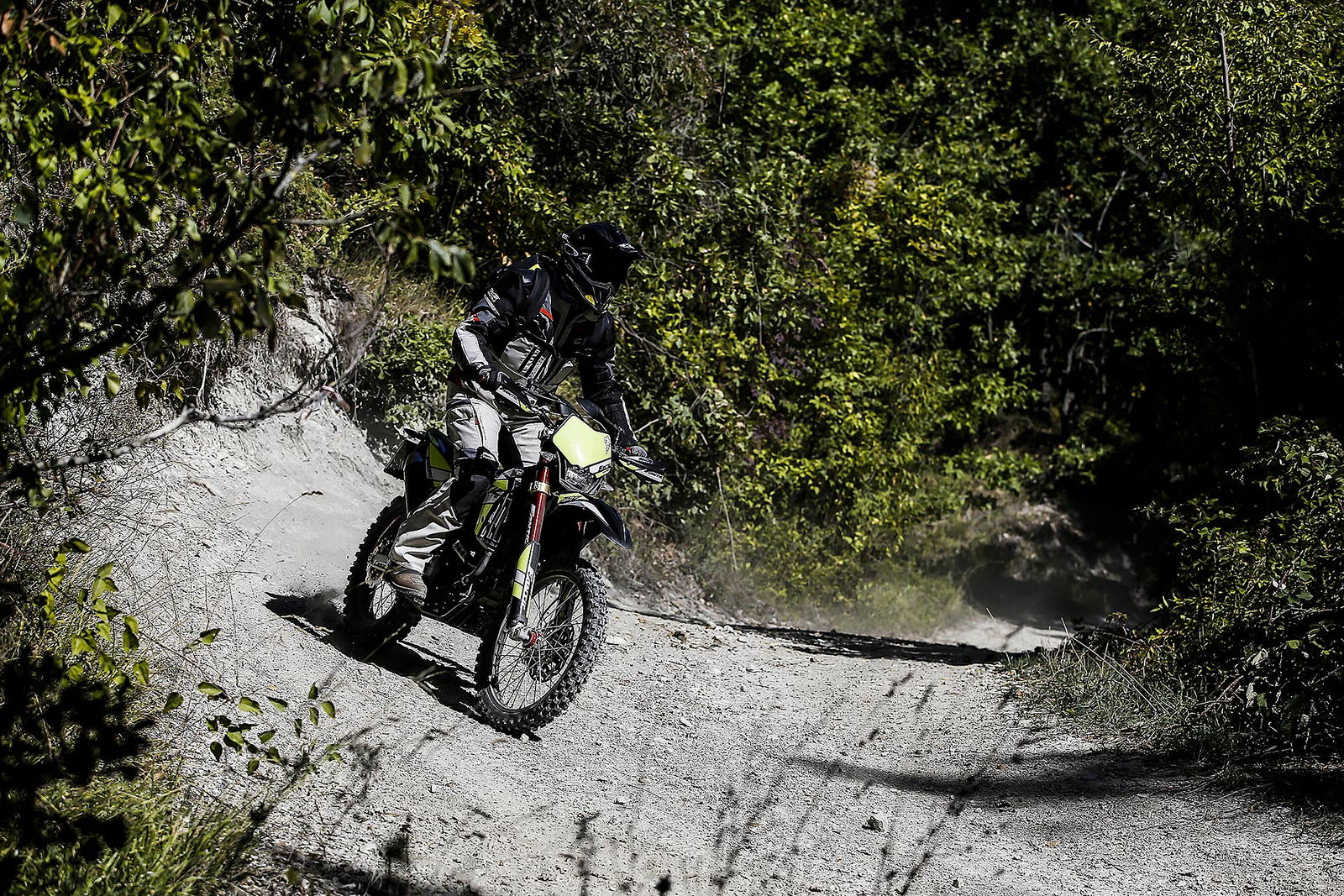 La Fantic Enduro è indubbiamente la cucciola di questa panoramica. Non ha ambizioni racing e come tale va trattata, anche se mostra ottimi particolari. E’ una dual enduro quindi più facile da gestire a partire dalle prestazioni che non spaventano e le sospensioni pensate per evitare gli eventuali fondo corsa affrontando un grosso ostacolo. Migliorabili i comandi al manubrio e la conformazione delle sella.