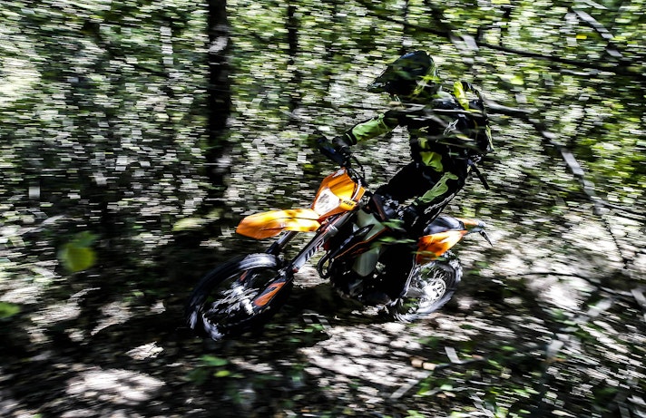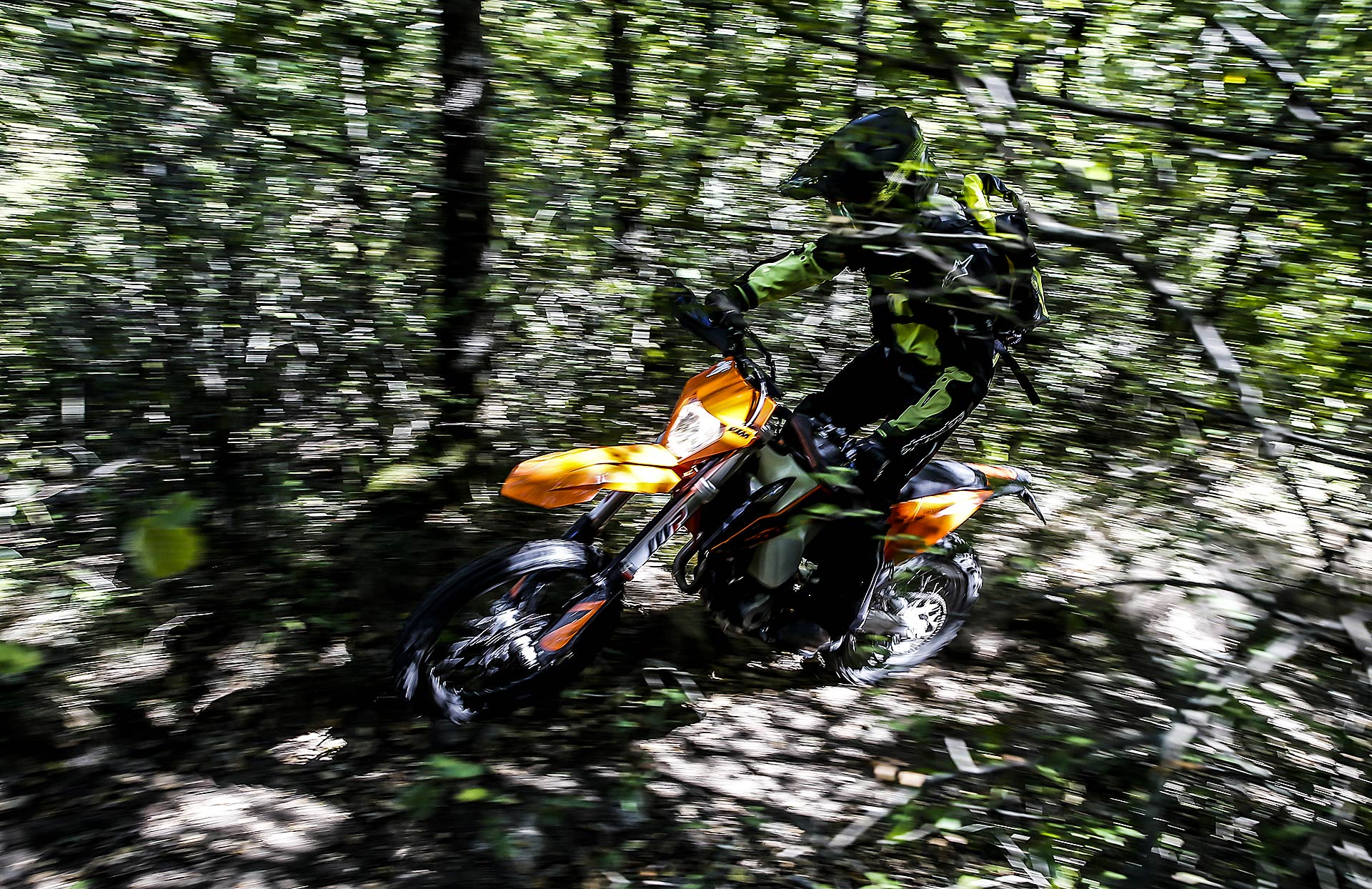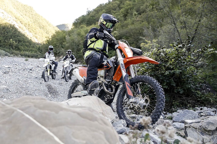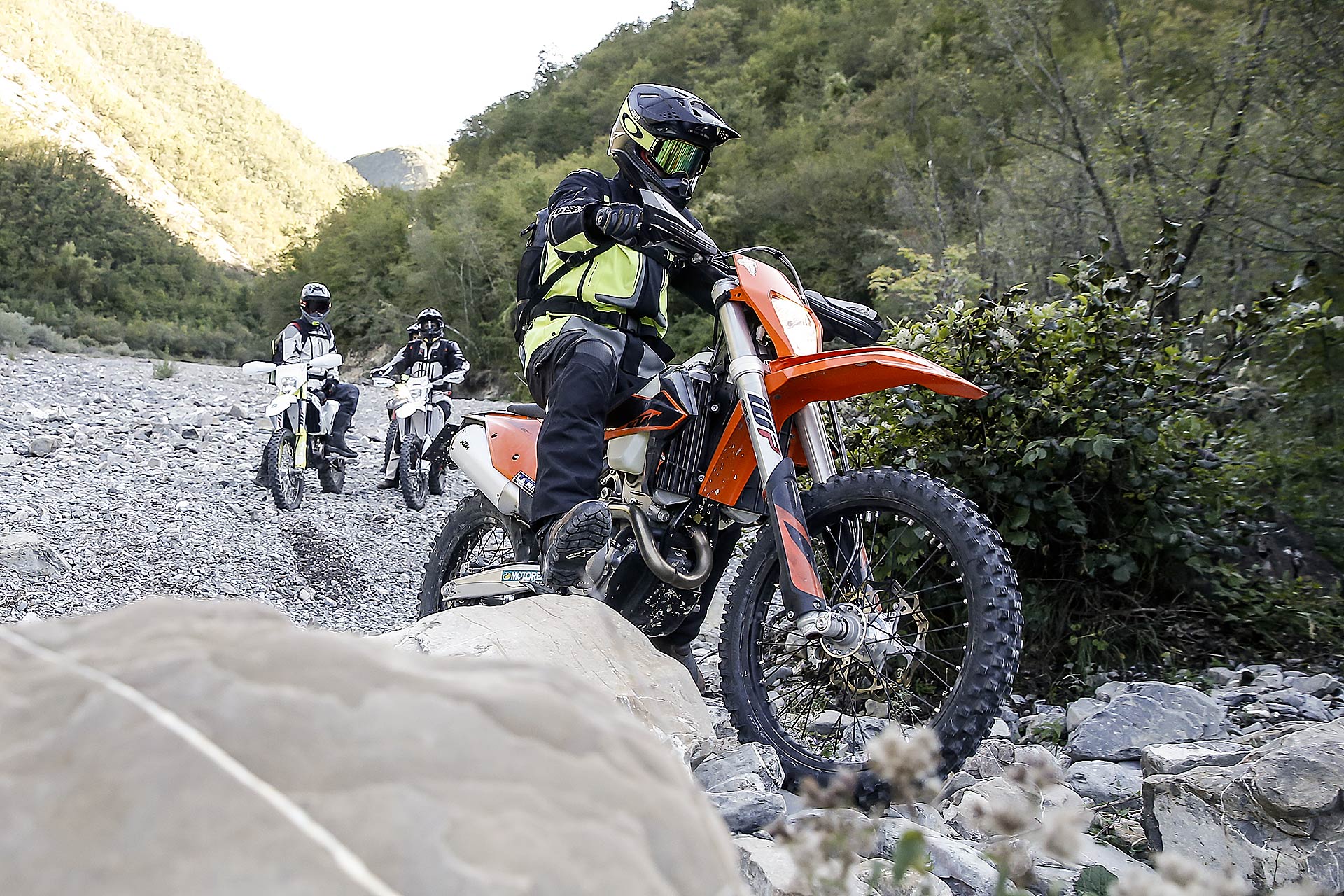 La EXC-F è una vecchia conoscenza e in sella ritrovo il feeling che ho sempre apprezzato delle enduro arancio. Non ho trovato differenze sostanziali con Husqvarna, anche se ho percepito una scelta di set up delle sospensioni leggermente più morbida e quindi confortevole e pronta a “vestire” meglio, accarezzando con più facilità gli ostacoli che abbiamo incontrato lungo il percorso.