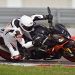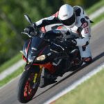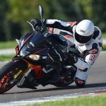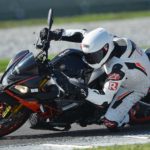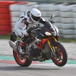 Per chiudere è quella che consuma di più, il che probabilmente interesserà a pochi ma è comunque un punticino lasciato per strada nel nostro giudizio. In pista lo scenario si ribalta completamente: la Tuono è la moto da cui non vorresti mai scendere. Precisa, velocissima, si muove tra i cordoli con una maestria che le altre possono solo immaginare. Insomma se la porti in pista lei fa un altro sport, e ti rende tutto molto facile. L’impostazione in sella, la luce a terra, la trazione, la frenata (con ABS impostato su 1) non puoi chiedere niente di più. Su indicazione di Aprilia per la guida in pista abbiamo precaricato completamente la molla del monoammortizzatore e poi abbiamo lasciato fare a loro, alle sospensioni elettroniche (mappa 2), che nelle due sessioni non hanno mostrato il fianco ad alcuna critica. Massimo dei voti in tutte le voci. Qui l’Aprilia fa davvero la differenza.
