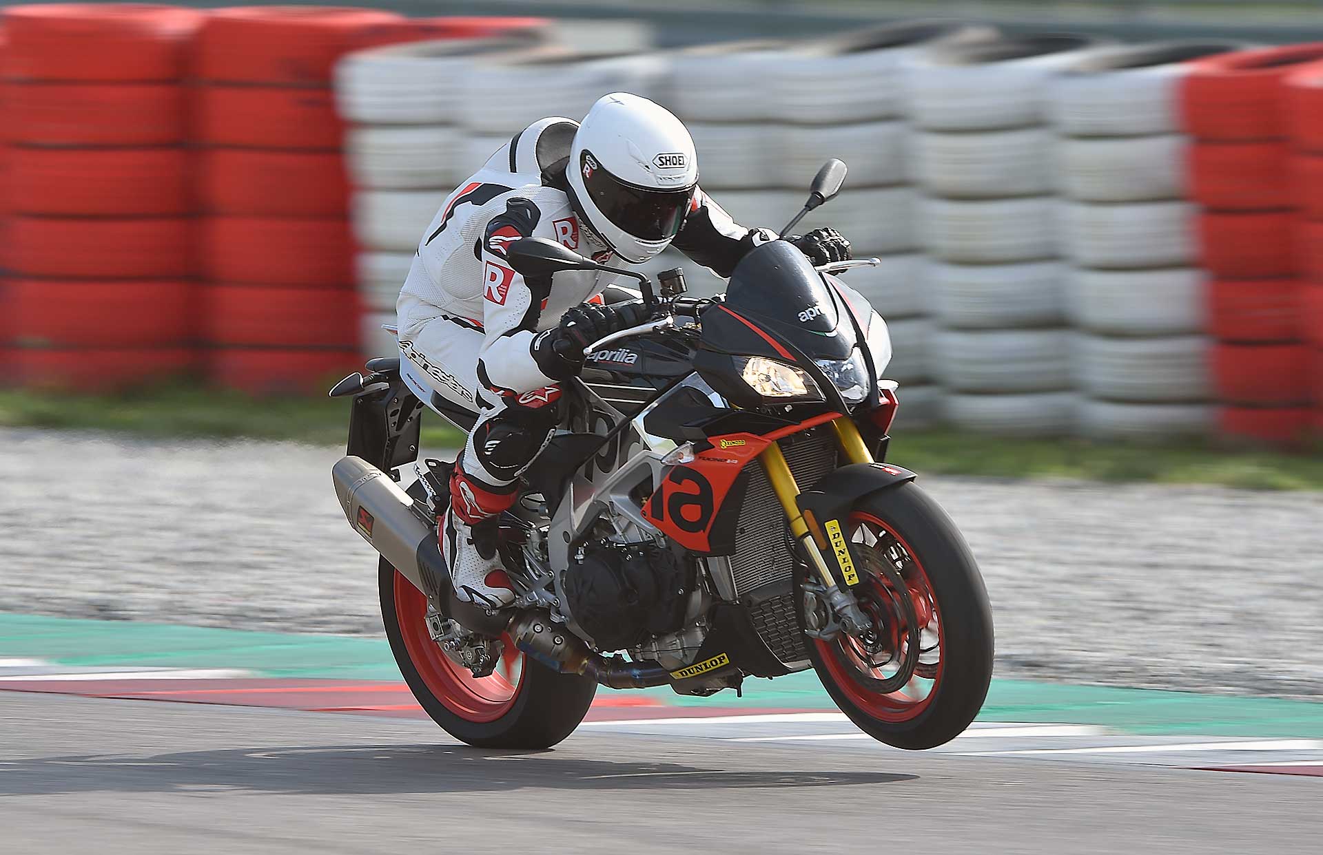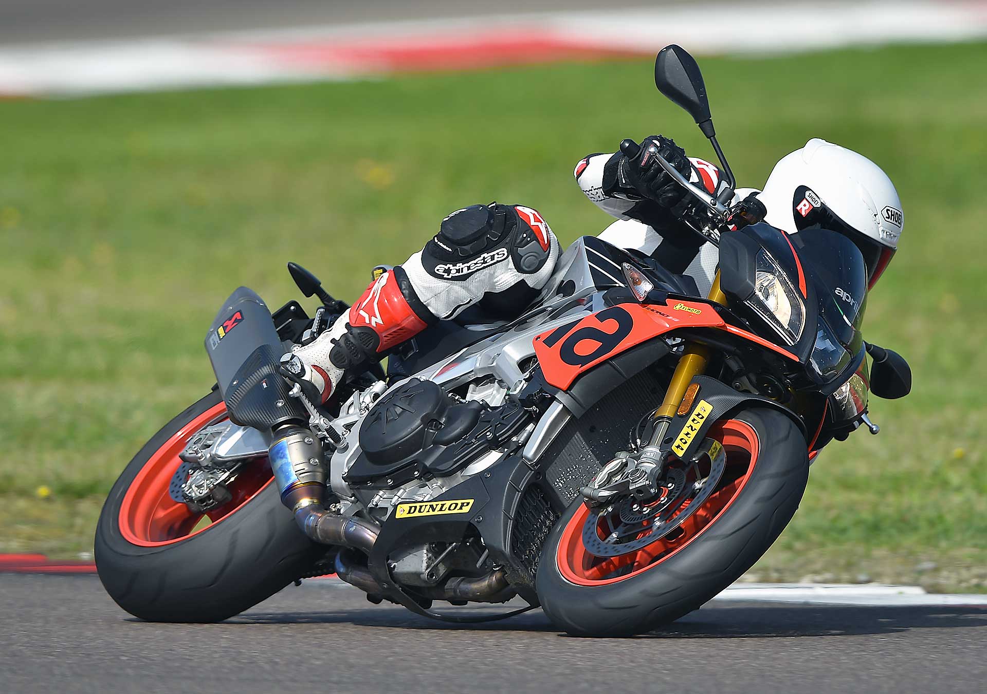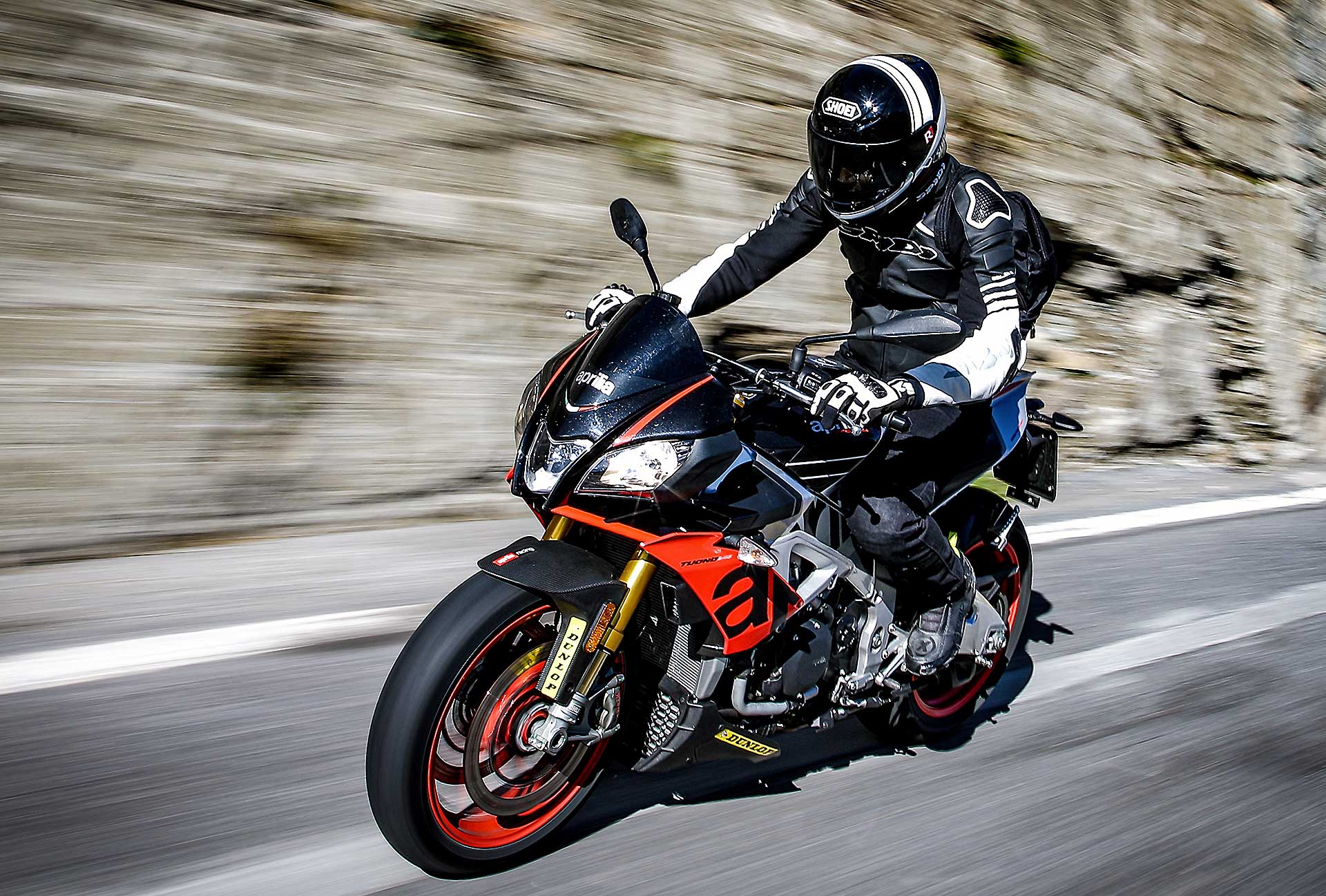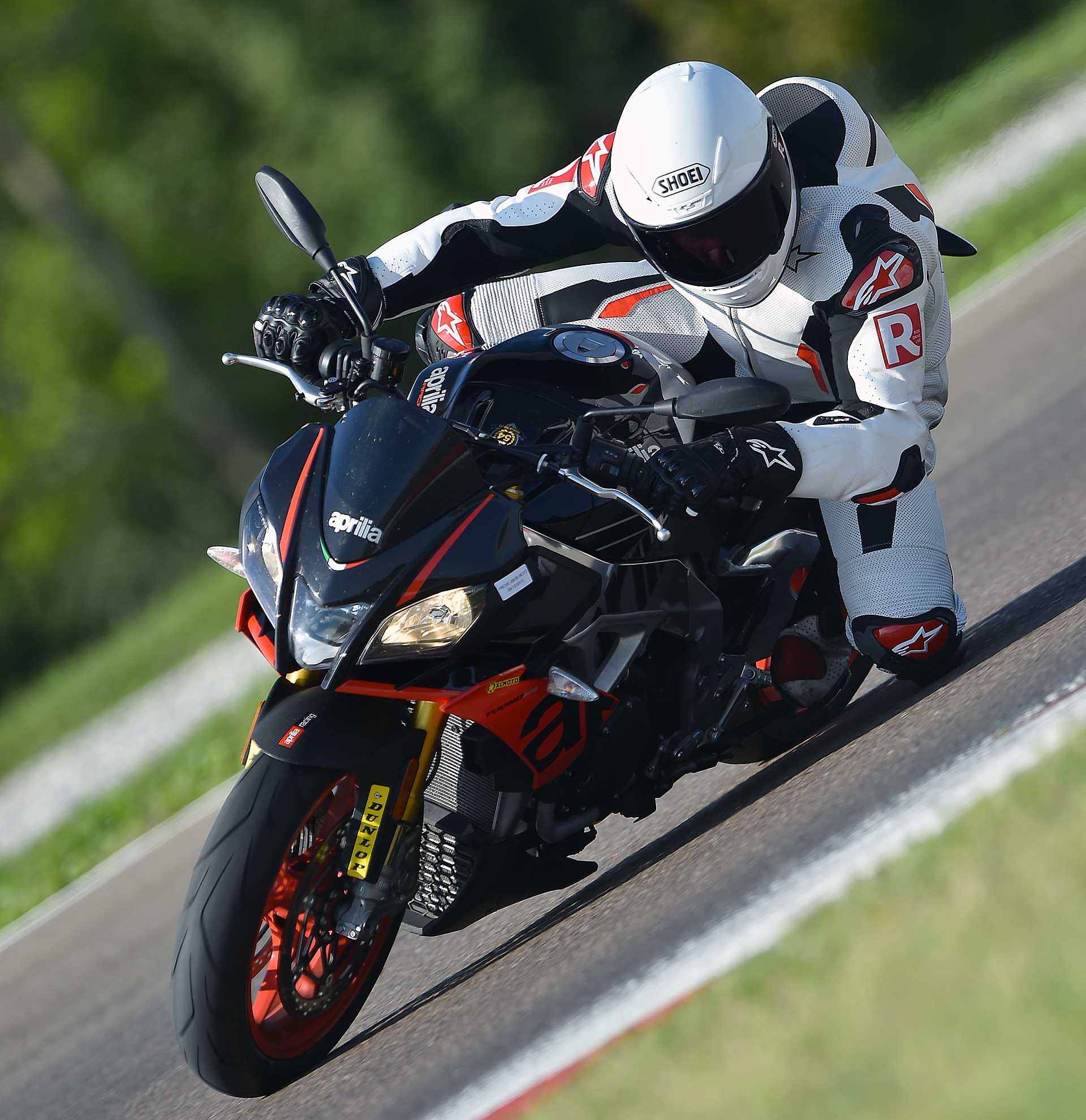 Sì, perché negli anni la Tuono ha smussato parecchi spigoli, ha migliorato la fruibilità su strada senza perdere la sua tremenda efficacia. Il suo DNA di sportiva pura, a tratti estrema, non è tuttavia venuto meno. Se le altre sono moto da strada che si adattano ad andare in pista, la Tuono è un moto da pista che si accontenta di andare anche su strada. Non è una differenza da poco, perché è quello che alla fine ne compone il carattere. Guidare la Tuono è qualcosa di tremendamente viscerale: dalla posizione in sella all’erogazione decisa -a tratti brutale- al sound che andrebbe brevettato per il coinvolgimento emotivo che contribuisce a fornire. La guidi e ti senti speciale. Gasato. Ti senti pilota ogni volta che acceleri.L’efficacia della Tuono non è mai stata in discussione, ancor meglio se portata sul percorso che ama, ovvero il misto veloce, habitat dove è letteralmente imbattibile. Su questo non ci sono dubbi. Nessuna offre lo stesso feeling sul davanti, nessuna la stessa sensazione di stabilità. KTM la avvicina, ma non la raggiunge.La Tuono non è sicuramente la più maneggevole del lotto, ma è quella con cui senza dubbio instauri il miglior rapporto di fiducia quando spingi. E più si alzano le velocità, più lei si trova a proprio agio, sostenuta da sospensioni perfette, una elettronica a cui non puoi onestamente chiedere di più da freni grandiosi e da un motore che davvero non finisce mai.