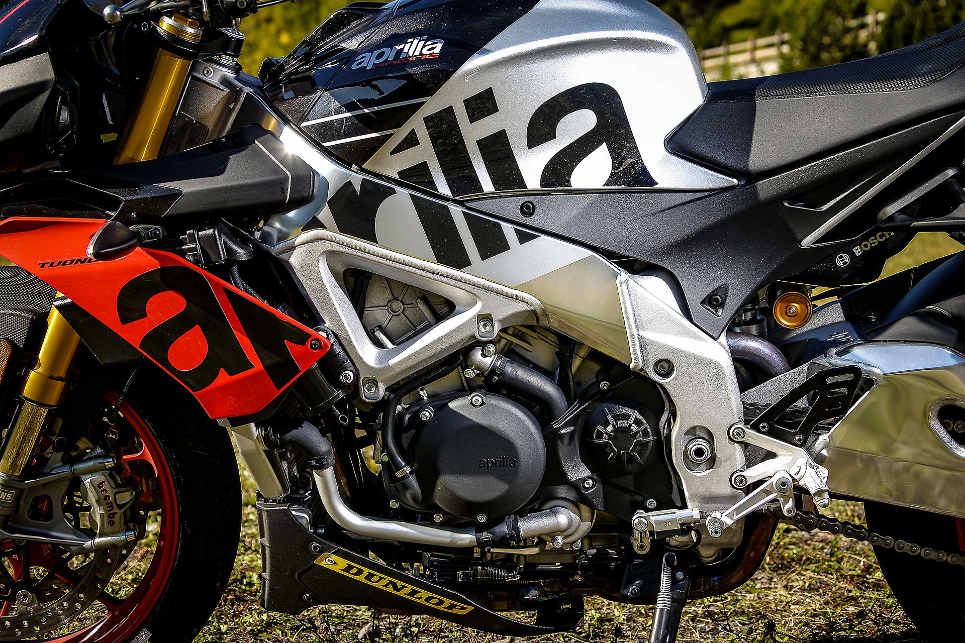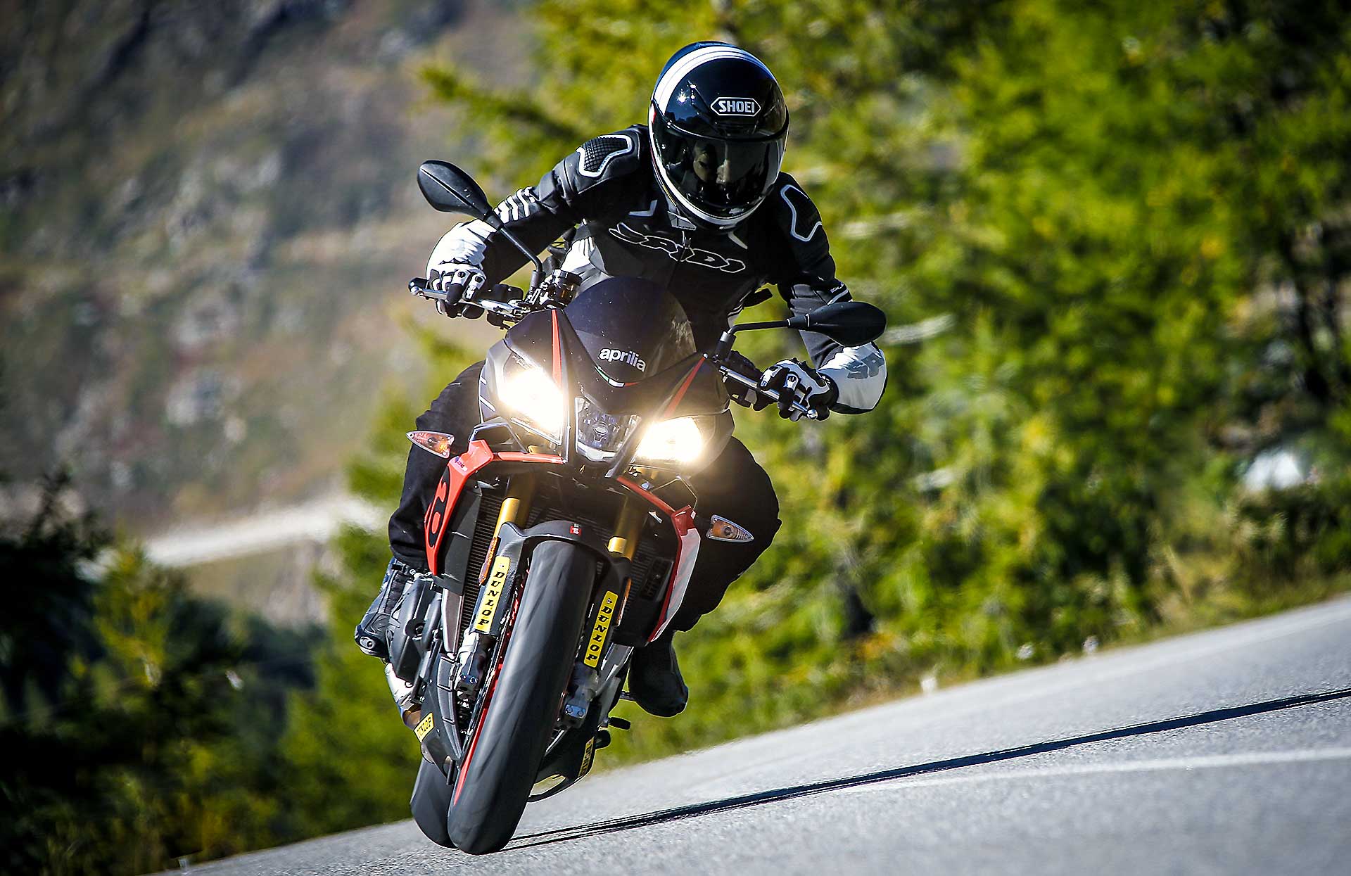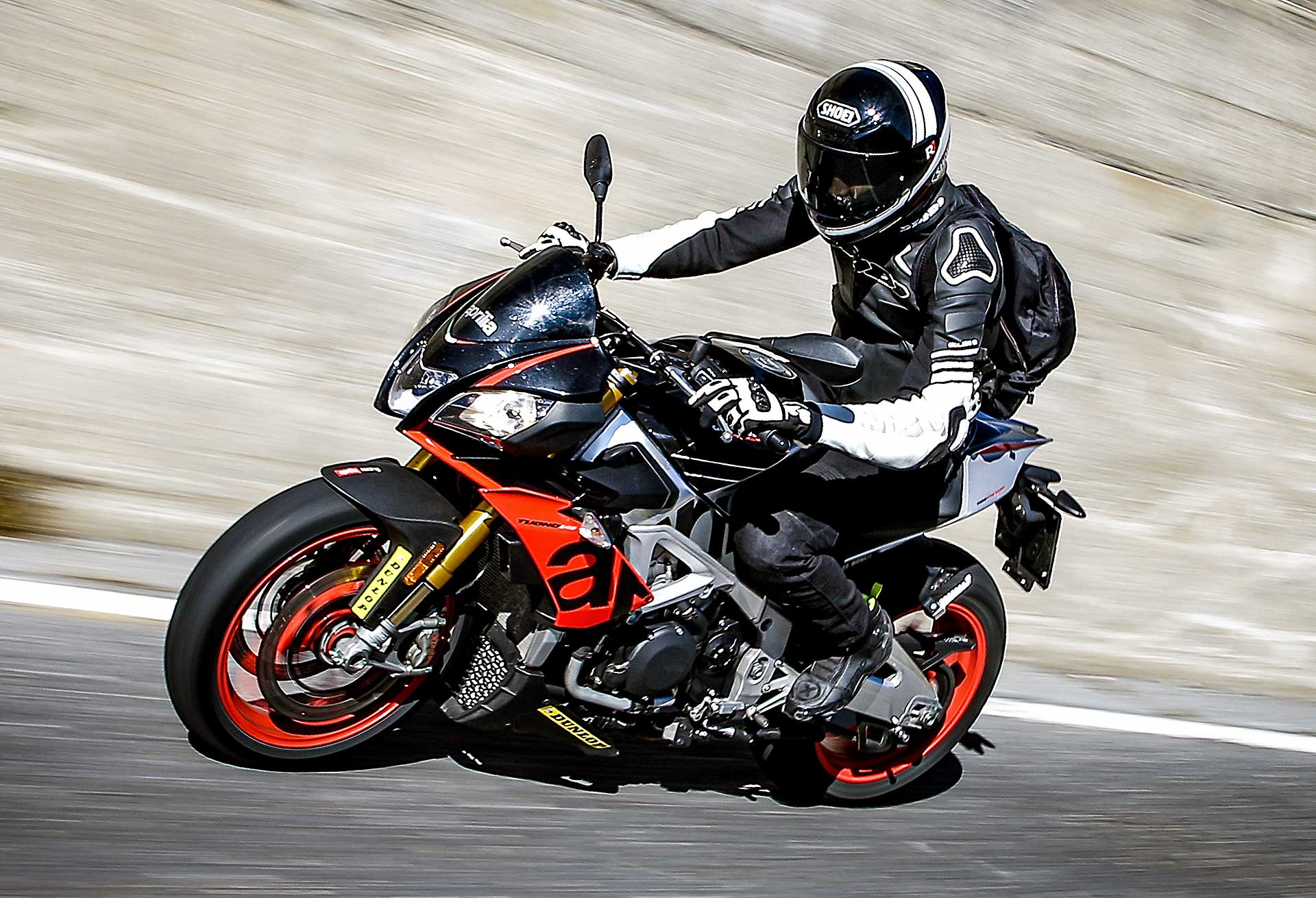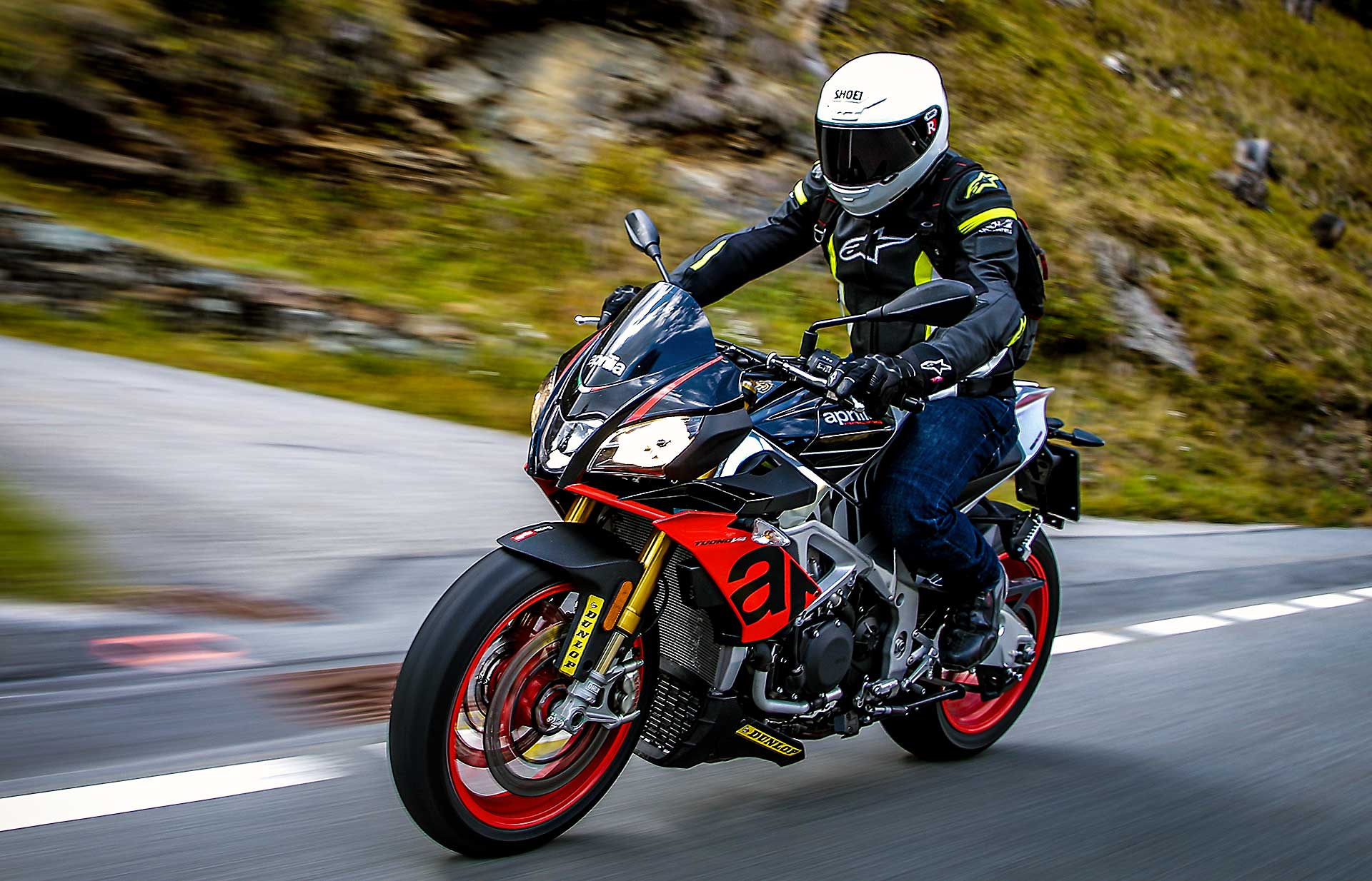 Sì, perché negli anni la Tuono ha smussato parecchi spigoli, ha migliorato la fruibilità su strada senza perdere la sua tremenda efficacia. Il suo DNA di sportiva pura, a tratti estrema, non è tuttavia venuto meno. Se le altre sono moto da strada che si adattano ad andare in pista, la Tuono è un moto da pista che si accontenta di andare anche su strada. Non è una differenza da poco, perché è quello che alla fine ne compone il carattere. Guidare la Tuono è qualcosa di tremendamente viscerale: dalla posizione in sella all’erogazione decisa -a tratti brutale- al sound che andrebbe brevettato per il coinvolgimento emotivo che contribuisce a fornire. La guidi e ti senti speciale. Gasato. Ti senti pilota ogni volta che acceleri.L’efficacia della Tuono non è mai stata in discussione, ancor meglio se portata sul percorso che ama, ovvero il misto veloce, habitat dove è letteralmente imbattibile. Su questo non ci sono dubbi. Nessuna offre lo stesso feeling sul davanti, nessuna la stessa sensazione di stabilità. KTM la avvicina, ma non la raggiunge.La Tuono non è sicuramente la più maneggevole del lotto, ma è quella con cui senza dubbio instauri il miglior rapporto di fiducia quando spingi. E più si alzano le velocità, più lei si trova a proprio agio, sostenuta da sospensioni perfette, una elettronica a cui non puoi onestamente chiedere di più da freni grandiosi e da un motore che davvero non finisce mai.