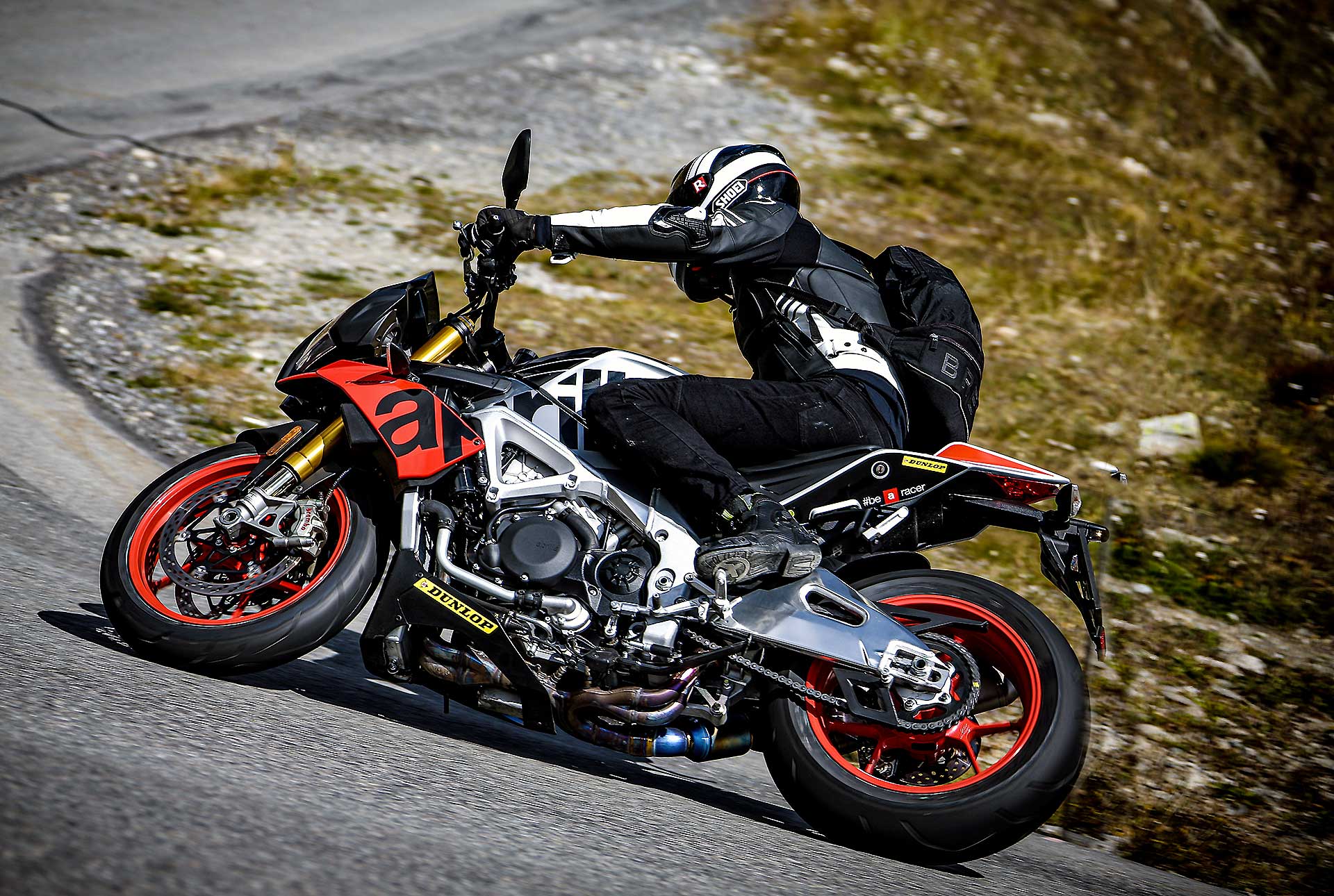 Una moto che però richiede uno “skill” di guida elevato, perché va benissimo, va fortissimo ma ti sfida di continuo. Se cerchi un punto debole lo trovi nel comfort. Migliorato, ma non il migliore. La posizione di guida è di assoluto controllo ma è puntata sul manubrio, in discesa i polsi si caricano. Alla fine nei tanti cambi moto che abbiamo fatto la Tuono è quella che brami più di poter guidare. Dopo un po’ ti manca, quasi invidi chi la sta guidando, la vuoi, la cerchi. Ma è anche quella che dopo aver guidato forse lasci con meno rimpianto. La più esaltante per lo sparo breve e intenso, senza alcun dubbio, ma stancante se in sella ci passi molte ore.