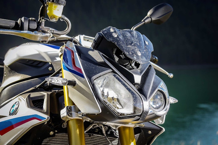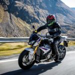 Come la Aprilia Tuono, anche la BMW S1000R nasce da una costola della supersportiva S1000RR il che sulla carta fa di lei una vera streetfighter. BMW però non ha ceduto alla tentazione di aumentare la cilindrata, per questo motivo il suo quattro cilindri in linea da 999 centimetri cubi ha la cubatura minore di tutti. Questo non gli impedisce tuttavia di restare saldamente sul podio della potenza con 165 cv a 11.000 giri e 114 Nm a 9.250 giri. Un motore, quello BMW, che si è sempre contraddistinto per cattiveria e soprattutto per la grande “schiena”. La dotazione elettronica in questo caso tiene il passo con quella di Aprilia e KTM. Quattro Riding Mode, ABS cornering, Dynamic Traction control e sospensioni semiattive -l’unica ad averle insieme alla Tuono- fanno parte del pacchetto BMW. I 205 kg in ordine di marcia lasciano intuire come la S1000R sia una delle naked più leggere e anche una delle più amichevoli con il pilota che siede a soli 814 mm da terra. 17,5 i litri del suo serbatoio non il più grande, ma nemmeno il più piccolo.