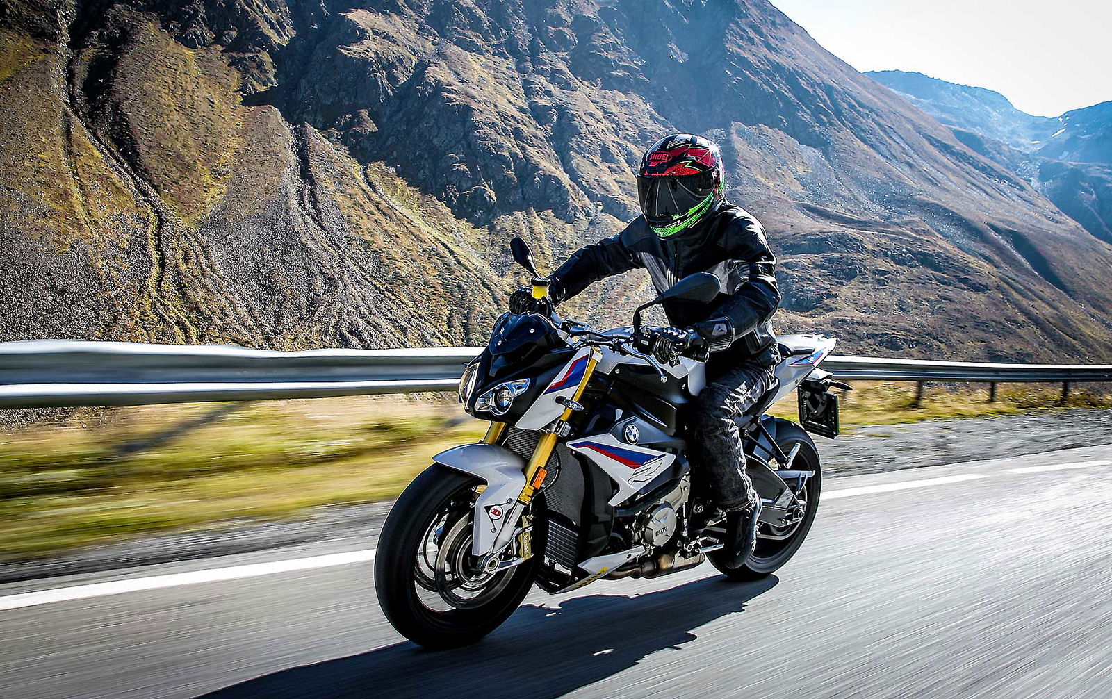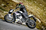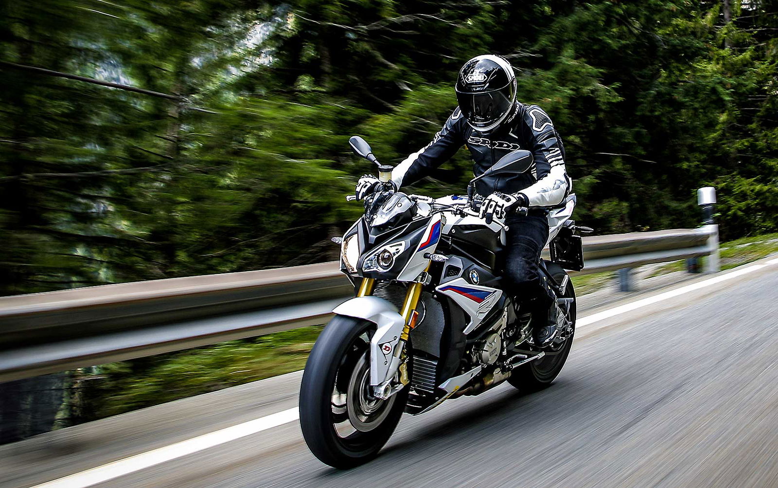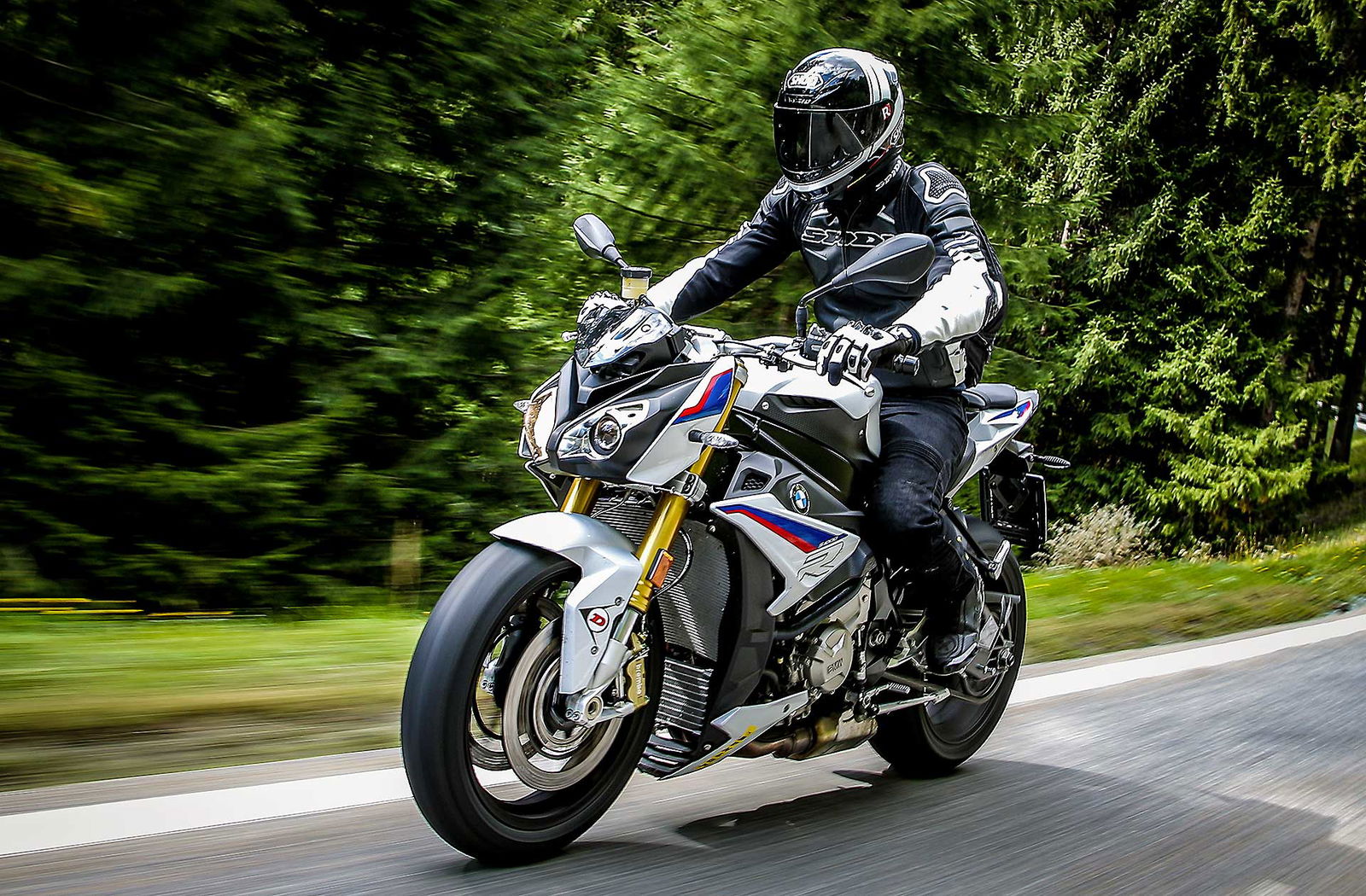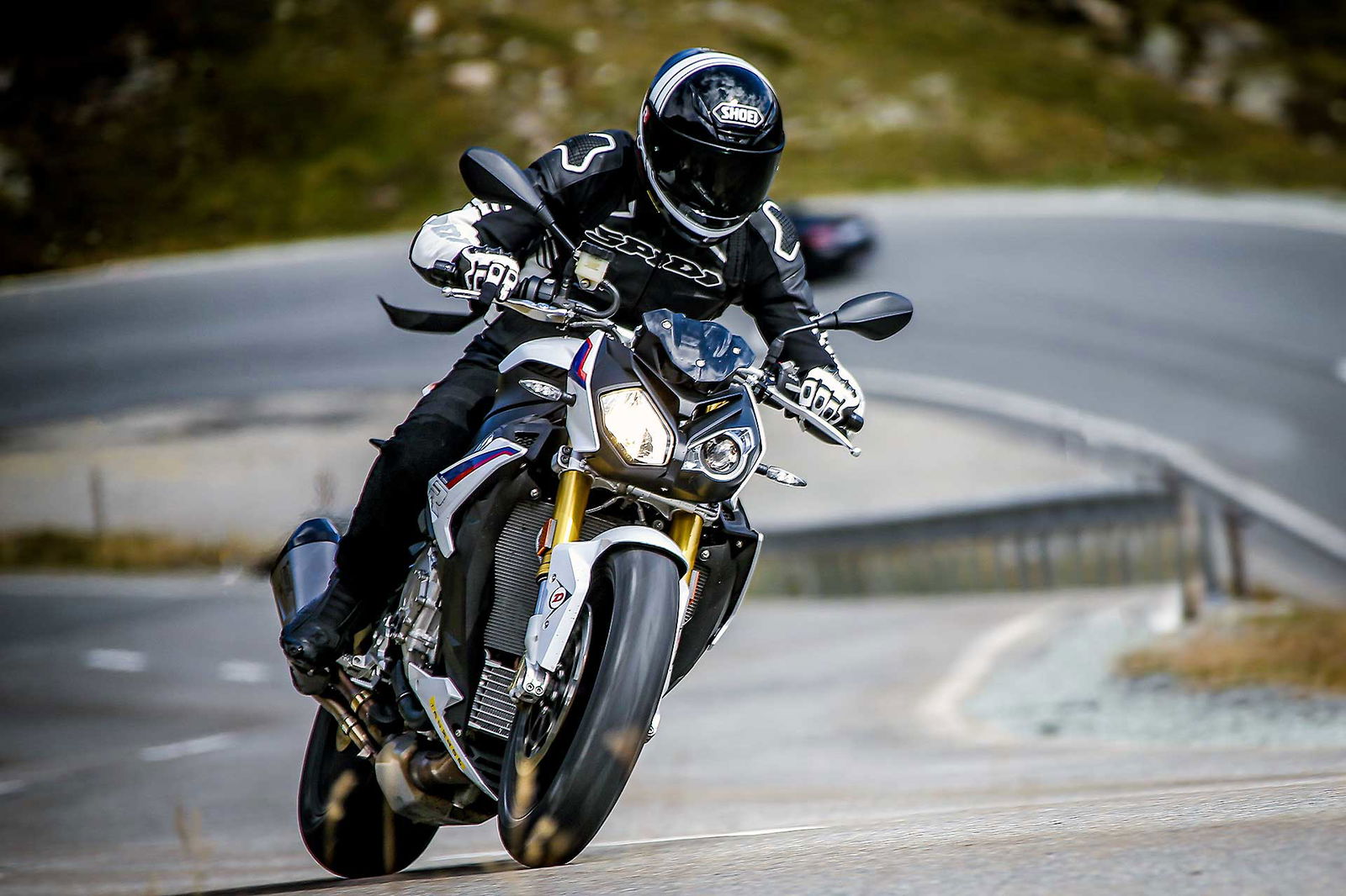 Non manca qualche chicca come quella dei cerchi forgiati, anche se in questo caso fanno parte di un pacchetto a pagamento. Cerchi che le regalano una agilità assoluta, ma che sono anche i responsabili di una certa leggerezza di sterzo ad alta velocità. Tornando alle sospensioni, la mappatura che abbiamo preferito è Road, la Dynamic si rivela un po’ troppo secca alle alte velocità (intese come velocità di funzionamento delle sospensioni) faticando a copiare i colpi secchi che vengono rimandati al pilota. Dal punto di vista della posizione di guida è una delle moto (insieme a Triumph) che è piaciuta di più a tutti, a livello di comfort la S1000R sa davvero il fatto suo, scendi da una giornata in sella e non sei nemmeno stanco, grazie all’imbottitura della sella, protezione (per quel poco che c’è), questo è un pregio.Il 4 cilindri ha quindi ancora molte frecce al suo arco, aiutato anche da una rapportatura giustamente corta che lo rende molto reattivo al gas. Gas che ha un controllo esemplare: tornanti, misto stretto, ripartenze, la gestione dell’erogazione con la BMW è sempre perfetta. Sebbene si atteggi a streetfighter, vista la stretta derivazione dalla S1000RR, la S1000R resta una eccellente moto con attitudine più stradale che pistaiola.In pista continua ad essere la formidabile erogazione del motore il punto forte anche se i controlli sono un gradino sotto i migliori, ma il comfort che tanto piace sui passi di montagna, la rende un po’ meno efficace rispetto ad Aprilia e KTM tra i cordoli.