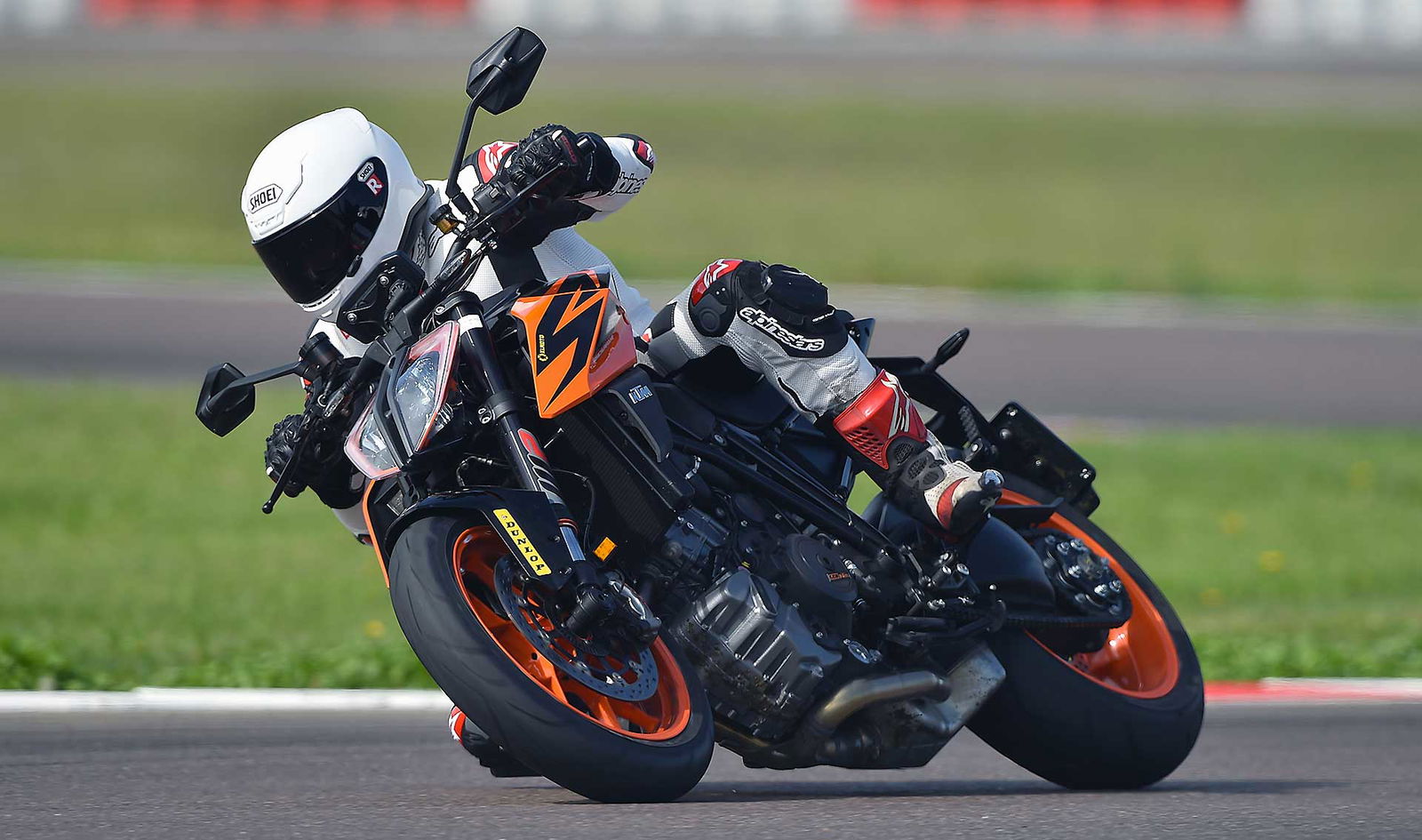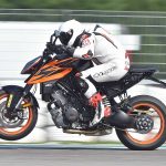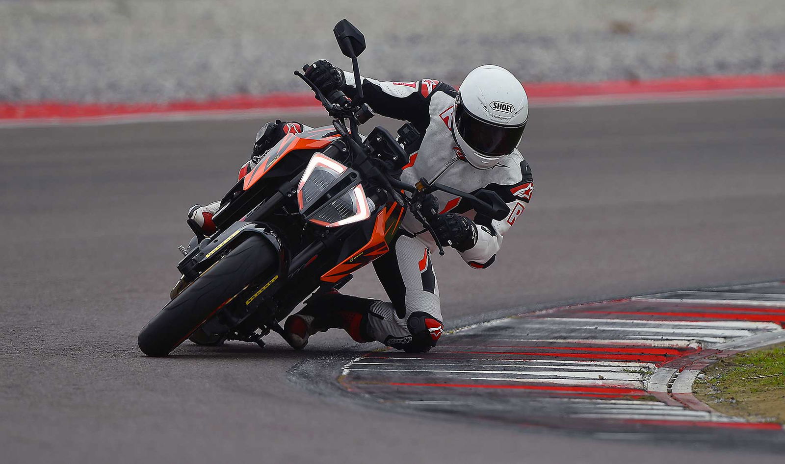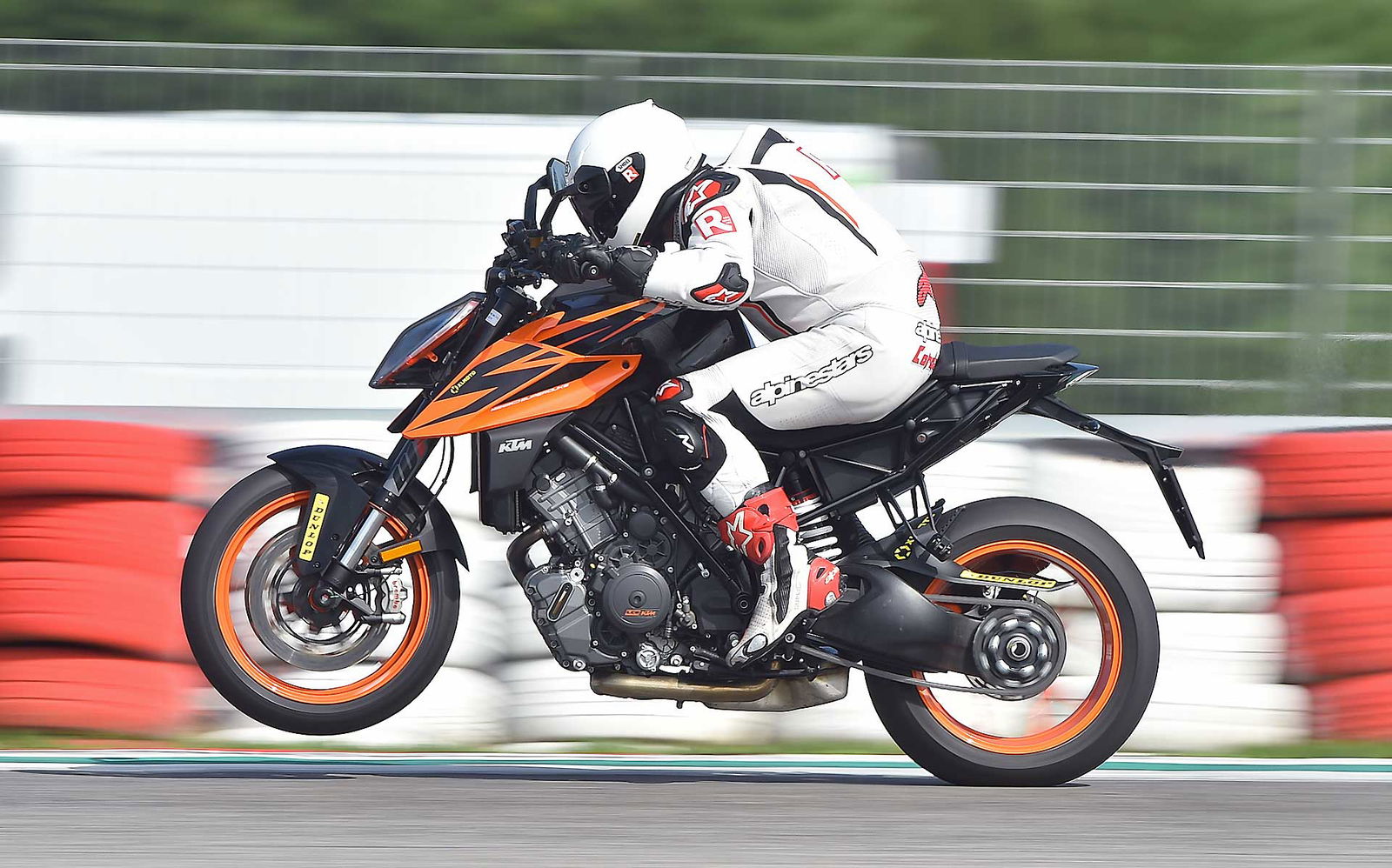I punticini che la KTM ha lasciato alla Tuono sono tutti in pista, dove l’altezza da terra e la posizione di guida meno sportiva non tolgono in fondo troppa efficacia a una moto che ha davvero un motore super e sospensioni molto a punto (anche qui abbiamo seguito il setting suggerito da KTM), ma resta meno incisiva rispetto a una naked nata per fare il tempo in pista. Qualche punto in meno arriva dalla mancanza di regolazione del precarico molla della forcella, presente su tutte le altre moto della comparativa. Alla fine in realtà non se ne avverte nemmeno l’esigenza, ma le altre ce l’hanno. Inoltre anche con la mappatura track (risposta acceleratore sempre Street, perché amo le risposte morbide) l’ABS della KTM si fa sentire in qualche cambio di direzione, per cui alla fine ho deciso di disattivarlo.