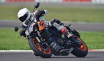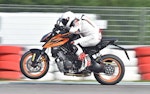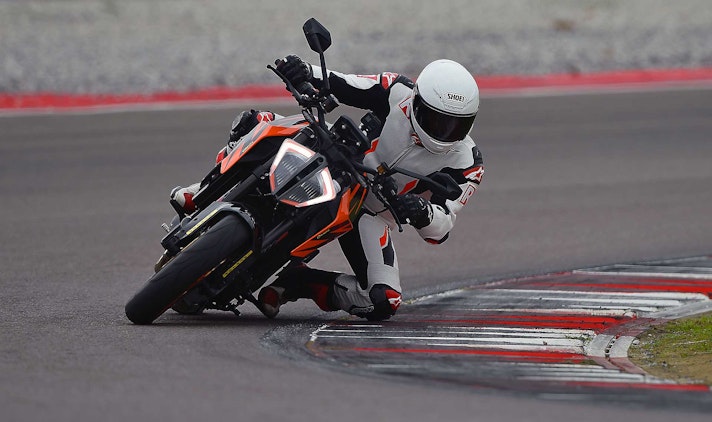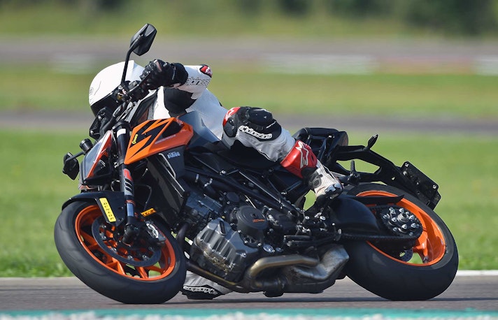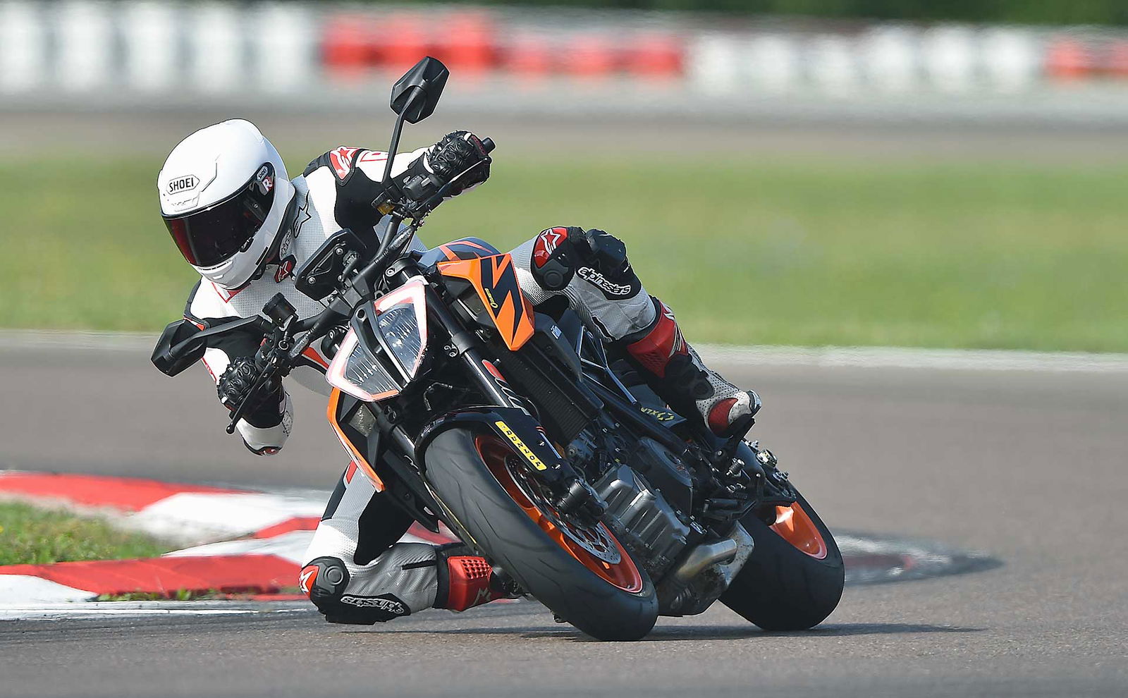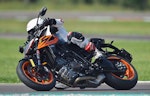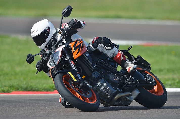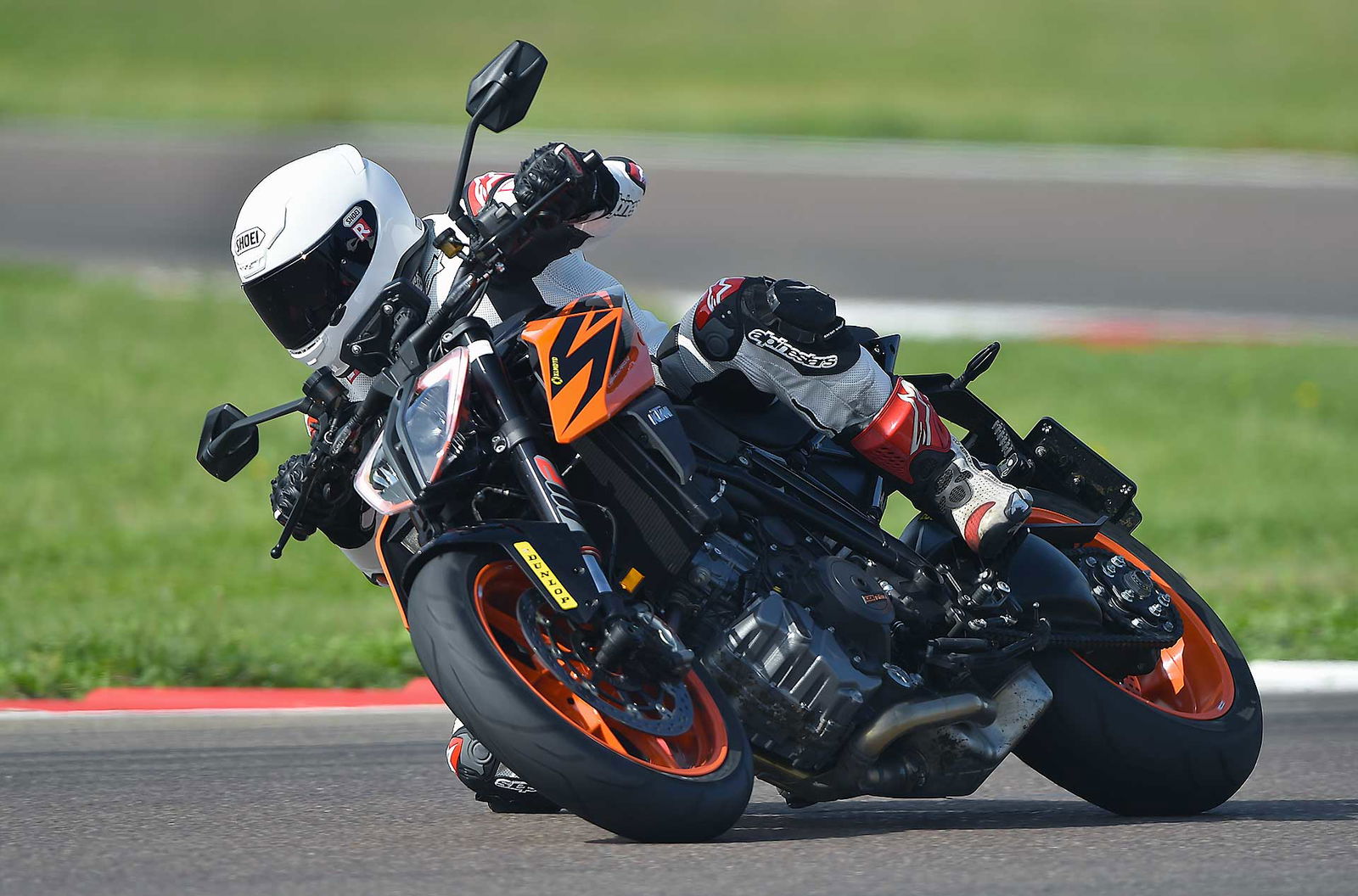 I punticini che la KTM ha lasciato alla Tuono sono tutti in pista, dove l’altezza da terra e la posizione di guida meno sportiva non tolgono in fondo troppa efficacia a una moto che ha davvero un motore super e sospensioni molto a punto (anche qui abbiamo seguito il setting suggerito da KTM), ma resta meno incisiva rispetto a una naked nata per fare il tempo in pista. Qualche punto in meno arriva dalla mancanza di regolazione del precarico molla della forcella, presente su tutte le altre moto della comparativa. Alla fine in realtà non se ne avverte nemmeno l’esigenza, ma le altre ce l’hanno. Inoltre anche con la mappatura track (risposta acceleratore sempre Street, perché amo le risposte morbide) l’ABS della KTM si fa sentire in qualche cambio di direzione, per cui alla fine ho deciso di disattivarlo.