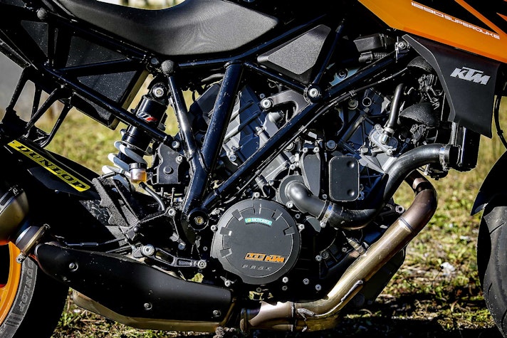 Il baricentro è più alto che sulle altre moto, per cui nei cambi di direzione non è veloce come potrebbe essere ad esempio la BMW che volta in un fiato. In compenso la Super Duke ti ripaga con un feeling di guida di altissimo livello, con una ruota anteriore che senti sempre bene e con un motore che definire straordinario è dire poco. Si perché non è solo potenza pura. Il bello è che con lei capisci sempre di avere il controllo. Capisci che hai per le mani la dinamite, ma la maneggi senza problemi. Ti dà tanto, tantissimo, senza che tu mai abbia la sensazione di avere troppo. Hai esattamente quello che vuoi, come lo vuoi, nel momento in cui lo vuoi. Una filosofia che su strada è vincente perché alla fine la KTM fa quello che fa la Tuono stressandoti meno, anche perché con lei puoi usare marce più alte migliorando quindi la scorrevolezza (il V2 con marce basse ha un freno motore che si fa sentire), avendo comunque la certezza che tanto dalla curva uscirai di slancio lo stesso.