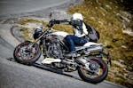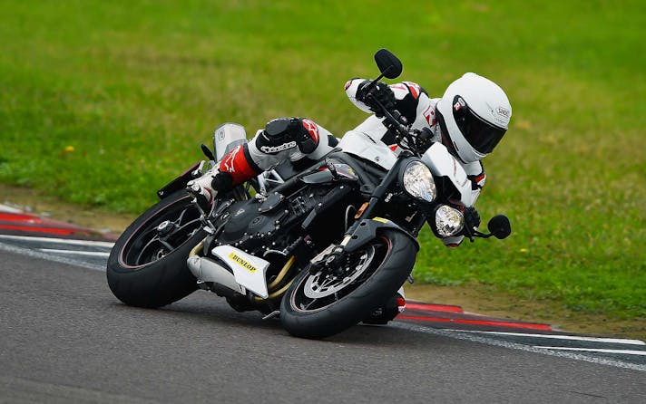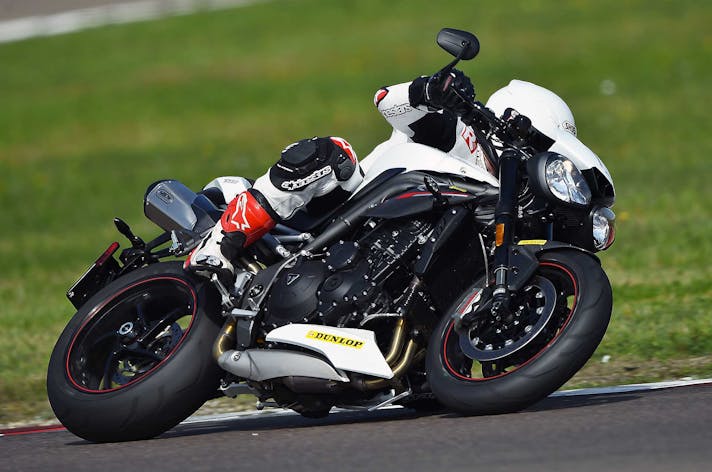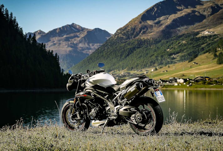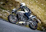 Le dimensioni ultracompatte fanno il paio con una grande agilità su strada, nello stretto la Speed Triple RS tiene il passo di BMW anzi fa anche meglio grazie a sospensioni ben più raffinate. Corta, con quote di sterzo radicali e un motore che spinge forte; non c’è da stupirsi se la Triumph si agita un po’ più delle altre nei cambi di direzione affrontati in modo spavaldo. Ma niente di preoccupante, la stabilità sul veloce è buona, la ciclistica ottima.