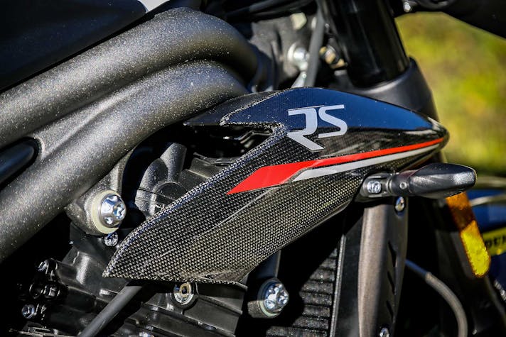 Una storia lunga 25 anni, quella della Speed Triple, moto voluta ai tempi dal geniale importatore italiano Carlo Talamo e divenuta negli anni simbolo stesso dell’arroganza motociclistica inglese. Quasi un brand nel brand per Triumph, che da allora ha sempre avuto almeno una Speed in listino. La RS rappresenta l’ultima evoluzione del progetto; fedele senza alcuna possibilità di tradimento al motore tre cilindri in linea, vero marchio di fabbrica per la Casa di Hinckley, la Speed ultima edizione non è cresciuta di cilindrata fermandosi ai canonici 1050 centimetri cubi, ma ha visto crescere la potenza fino a 150 cv a 10.500 giri con una coppia di 117 Nm espressa a soli 7.150 giri, regime che la dice lunga sul carattere della moto.