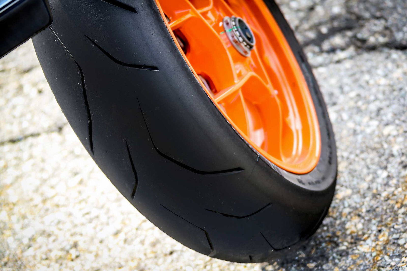 In questo caso vi basti sapere che sono il prodotto ideale per moto del genere, il pneumatico posteriore è bimescola, ma la mescola centrale più dura occupa solo il 20% del profilo, il resto è tutto dedicato al grip. Il rapporto pieni/vuoti di circa il 6% avvicina quello di un pneumatico racing. È evidente che questi pneumatici sono destinati a chi guida la moto in modo molto dinamico su strada, pretende performance elevate e non disdegna qualche track day.
