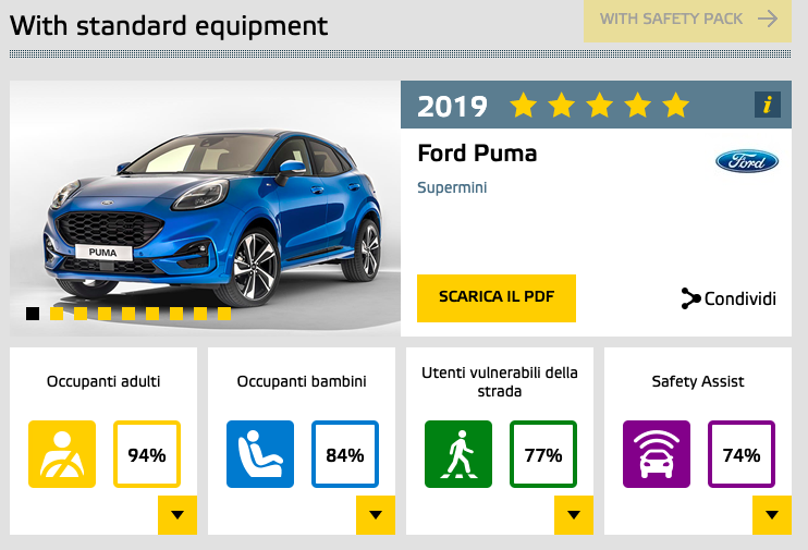 Per quello che riguarda la sicurezza, non si può non iniziare dalle 5 stelle EuroNCAP, frutto fra le altre cose dei 94 punti su 100 nella protezione degli adulti e degli 84 su 100 per i bambini. Quanto alla dotazione di sistemi di assistenza alla guida, spiccano il riconoscimento dei segnali stradali, la frenata automatica d’emergenza con riconoscimento pedoni e ciclisti e il sistema di mantenimento automatico della corsia. Dispositivi di serie su tutte le versioni.