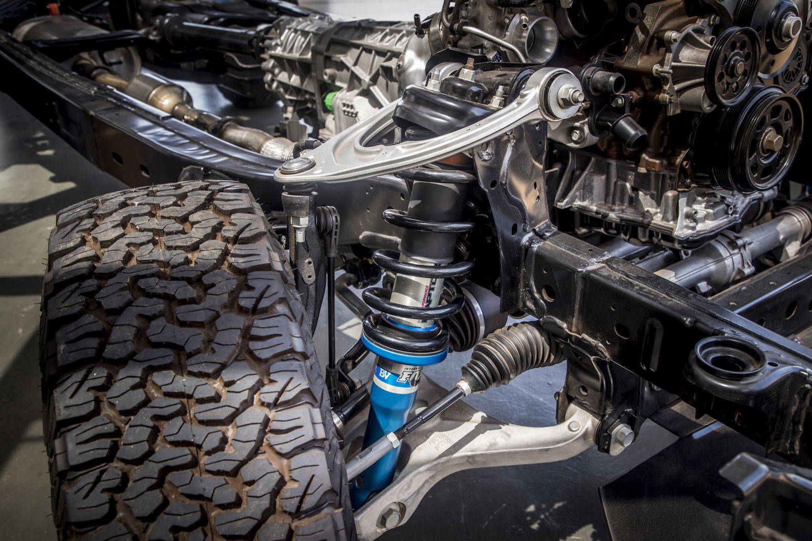 Ford Performance, quello dalle cui mani escono le vetture più performanti della Casa americana. Tralasciando per il momento le modifiche estetiche, veniamo al sodo di quelli che sono i contenuti del Raptor, che stanno tutti più o meno sotto la sua pelle. Il telaio, a traverse e longheroni (come si addice a un mezzo con reale vocazione off-road), è stato