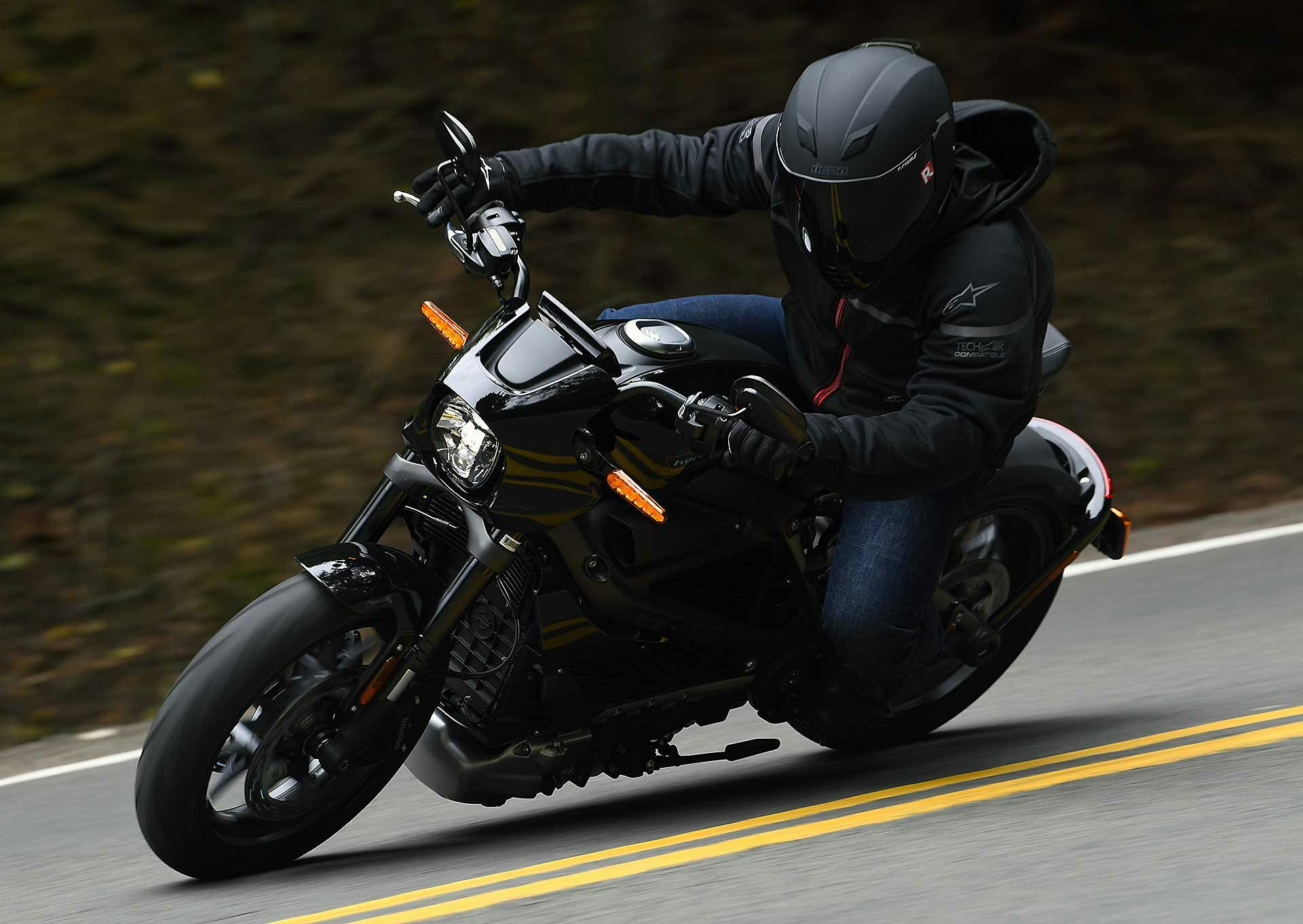 Se pensiamo che per divertirsi in moto sia necessario fare rumore forse non siamo ancora pronti per moto di questo tipo. Provatela e vi accorgerete che dopo un po’ di tempo in sella a una moto elettrica con una spinta come quella della LiveWire e con una ciclistica che funziona, il gusto non ne esce ridimensionato, anzi… Alla fine se il piacere di guida sta nel piegare, staccare e accelerare, allora qui lo troviamo tutto, anche perché la luce a terra è notevole e basta poco per trovare un ritmo nel misto che di rilassato ha ben poco. La LiveWire è bilanciata e ben frenata, si muove “piatta” su sospensioni ben assettate e non è incline al beccheggio, il che la rende piacevolmente efficace tra le curve. Non fa rumore, per cui non ti rendi conto della velocità che però c’è e si fa sentire quando la devi fermare per entrare in curva. La batteria alza un po’ il baricentro? La risposta è sì, ma la moto è bilanciatissima anche nelle manovre a bassa velocità e fa avvertire il suo peso solo quando si guida molto veloci tra le curve e si prende qualche sconnessione.