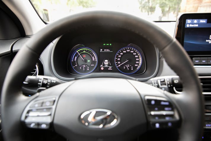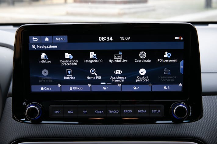 Kona Hybrid con sistema Audio Video Navigation da 10,25 pollici è equipaggiata con l’Eco-Driving Assist System (Eco DAS) per migliorare l’efficienza di guida: la Coasting Guide integrata analizza le informazioni ricevute dal sistema di navigazione per segnalare al guidatore quando è in prossimità di punti in cui è opportuno rallentare, come un cambio di direzione, un incrocio o un’uscita dall’autostrada. La funzione punta a ridurre il consumo di carburante e minimizzare l’utilizzo dei freni, e può essere attivata in modalità ECO tra i 40 e i 160 km/h.Eco DAS presenta inoltre il sistema predittivo di gestione dell’energia (Predictive Energy Management), che massimizza l’efficienza di utilizzo della batteria in salita e in discesa. Quando, per esempio, il sistema rileva uno stato della batteria piuttosto scarico durante la guida in salita, Kona Hybrid aumenta l’operatività del motore a combustione interna per ricaricarla, mentre nella situazione opposta (in discesa e con la batteria carica) l’Eco DAS aumenta l’intervento del motore elettrico per massimizzare l’efficienza di guida e sfruttare la frenata rigenerativa.