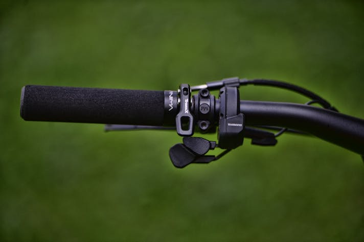 Sì, la soluzione della batteria esterna è per certi versi superata e non segue i moderni dettami della pedalata assistita, ma possiede ancora alcuni punti a favore come la praticità di smontaggio e la migliore dissipazione del calore. Si potrebbe invece chiedere qualcosa in più in quanto a capacità della batteria, 500 Wh, che si confronta con i 600 Wh dei sistemi Bosch e 700 Wh della Specialized Turbo Levo, che però hanno tempi di ricarica un po’ più lunghi. Ma la scelta della power unit Shimano, con il grande classico STEPS E8000, è comunque una garanzia di affidabilità e costanza di prestazioni.