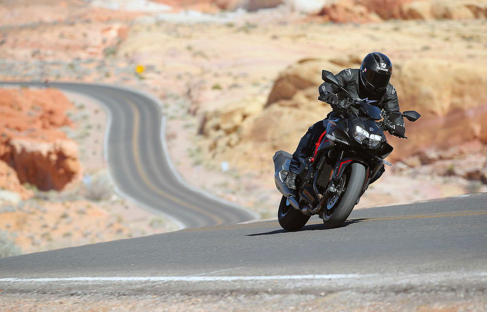 La prova che Kawasaki ha organizzato a Las Vegas certo è un po’ strana anche se comprensibile. Dovendo subire i limiti americani a tratti lentamente insopportabili gli uomini in verde ci hanno portati in un tracciato di handling nei pressi del circuito di Las Vegas per iniziare ad assaggiare le prestazioni della Z (peraltro capace di arrivare a 52 gradi di piega), ma questo è servito più che altro per dire che la pista non è il suo habitat. Poi due giri a tutta sul triovale del Las Vegas Motor Speedway ci hanno mostrato le esaltanti prestazioni motoristiche, oltre a terrorizzarci con i muretti che a due-e-sessante vedi sempre troppo vicini.