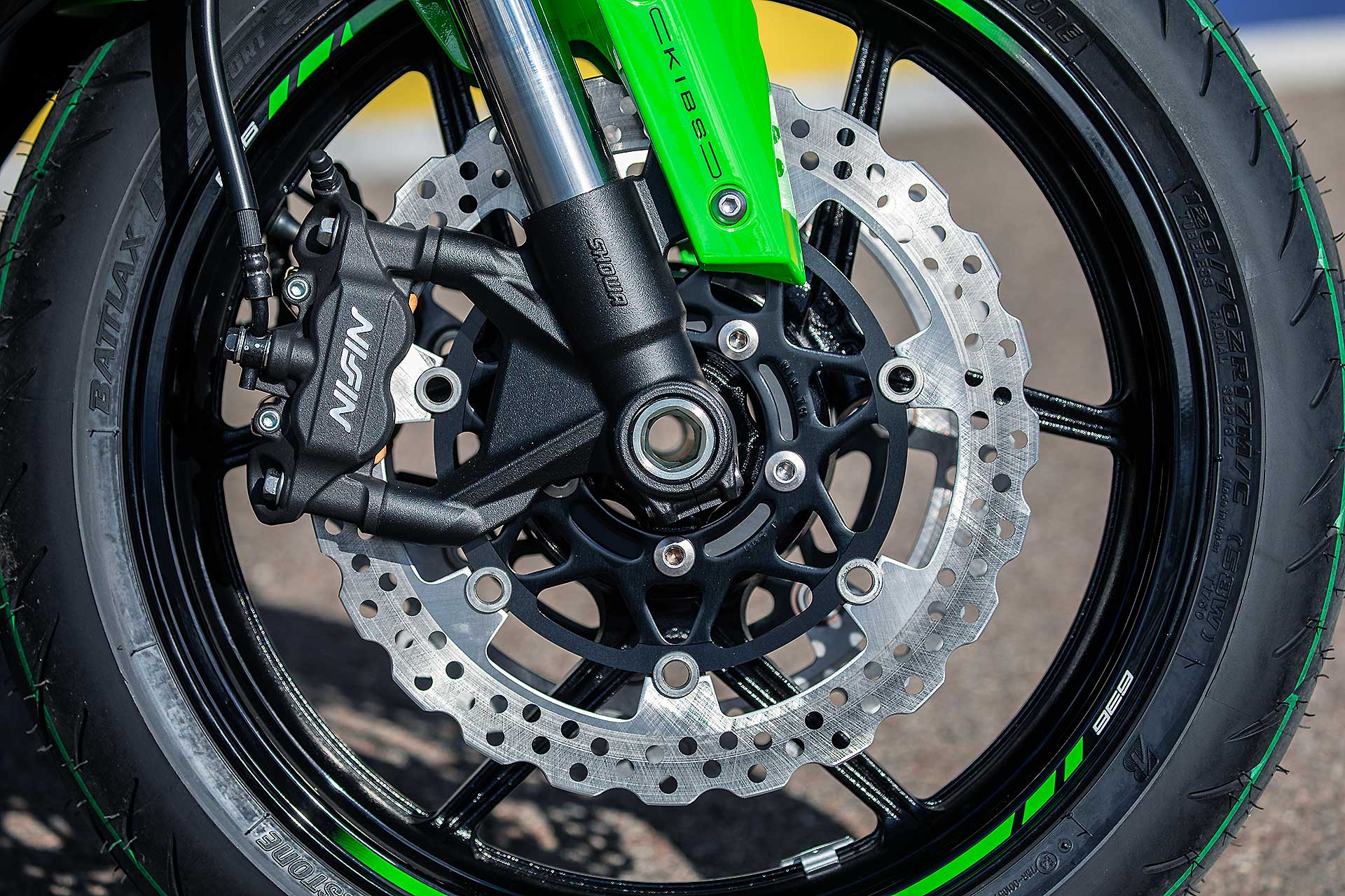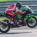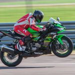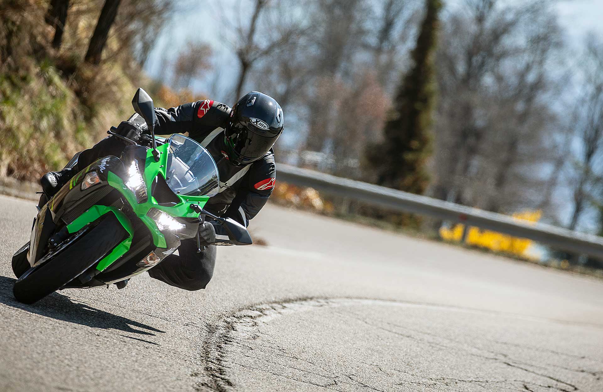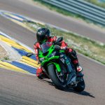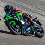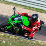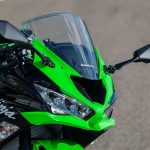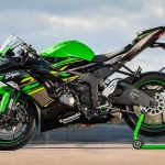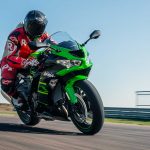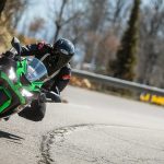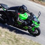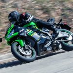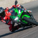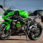 Passando alla ciclistica il telaio è del tipo perimetrale in alluminio; stesso materiale per il forcellone, collegato al telaio attraverso leveraggi e un monoammortizzatore completamente regolabile. La forcella è Showa SFF-BP (Separate Function Fork – Big Piston), anch’essa regolabile. Insomma alla supersport di Akashi non manca davvero nulla e il prezzo a cui viene venduta 11.890 euro per la grigia e 12.090 per la verde la rende molto competitiva sul mercato.