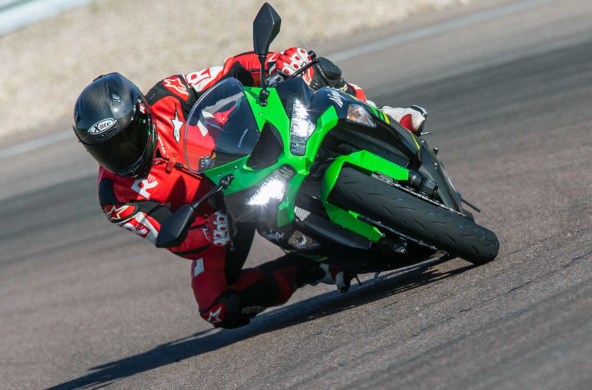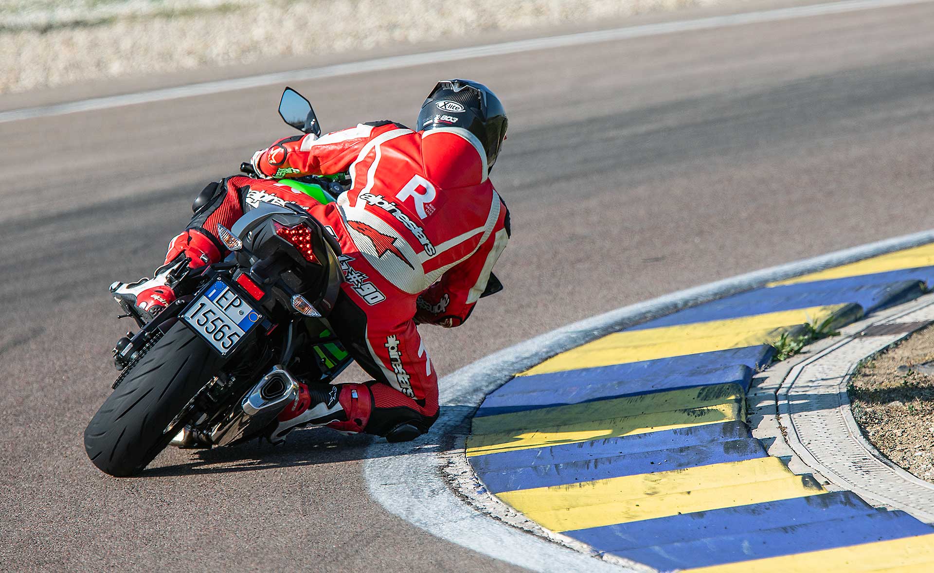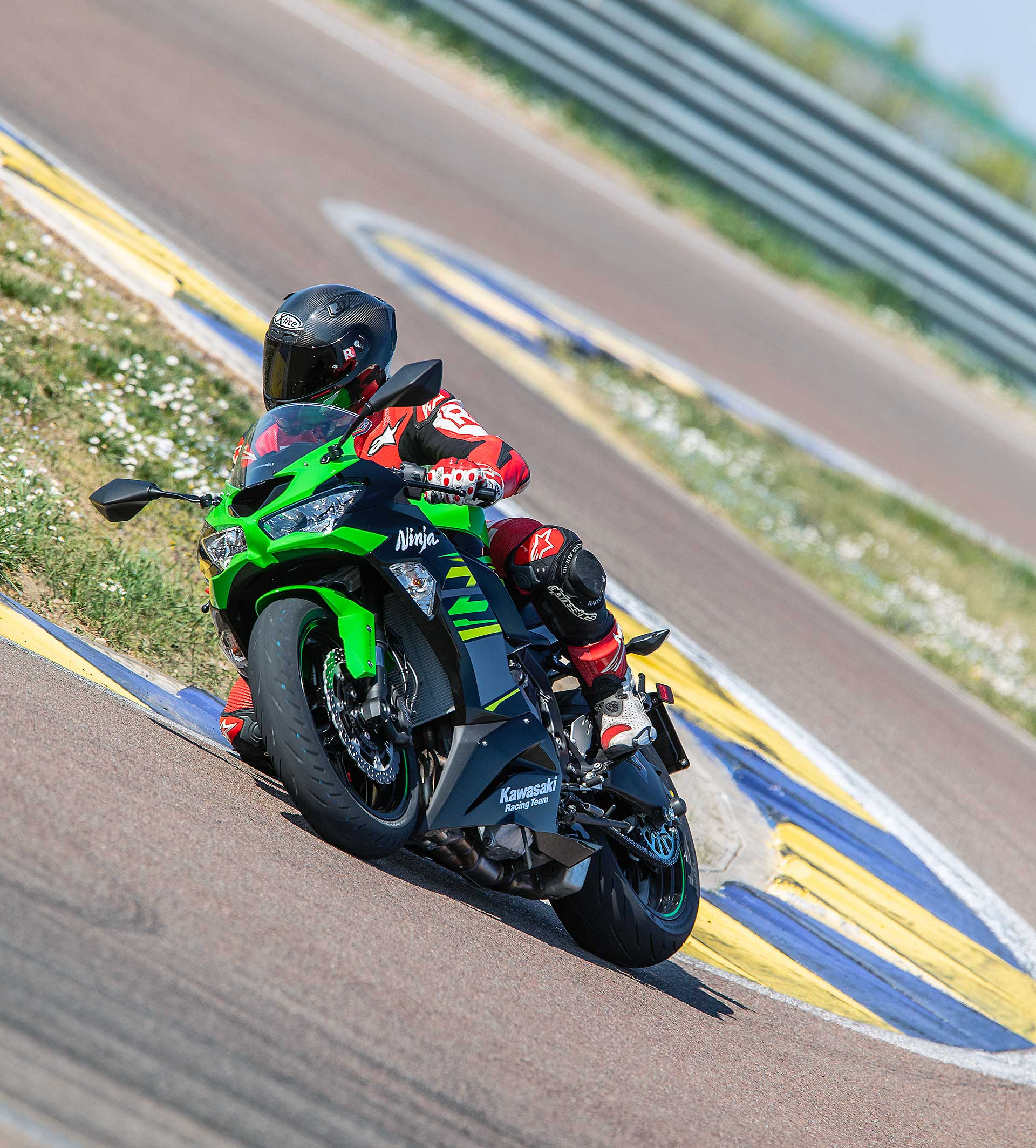 Passando alla ciclistica il telaio è del tipo perimetrale in alluminio; stesso materiale per il forcellone, collegato al telaio attraverso leveraggi e un monoammortizzatore completamente regolabile. La forcella è Showa SFF-BP (Separate Function Fork – Big Piston), anch’essa regolabile. Insomma alla supersport di Akashi non manca davvero nulla e il prezzo a cui viene venduta 11.890 euro per la grigia e 12.090 per la verde la rende molto competitiva sul mercato.
