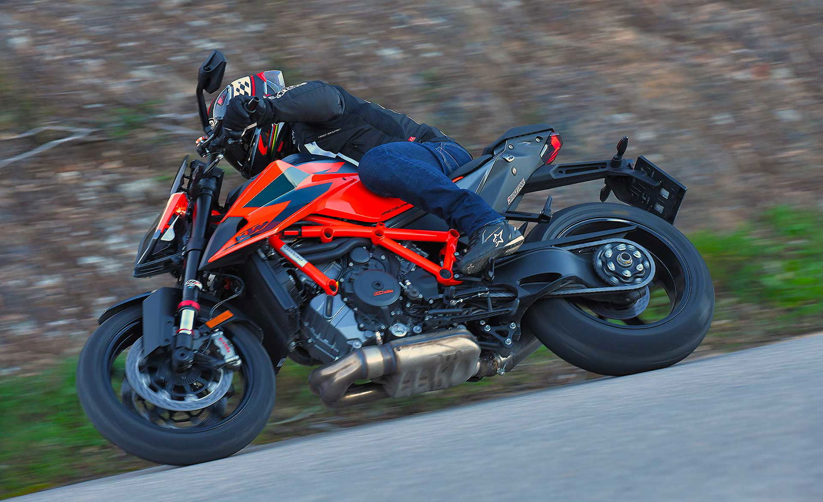 Semplicemente, per strada la Super Duke fa tutto molto bene: Freno, acceleratore, sospensioni, tutto comunica qualità e se un limite ha è quello di anestetizzarti e non farti rendere conto che stai viaggiando a velocità da patente stracciata. A proposito di sospensioni le nuove unità WP Apex e il leveraggio fanno compiere alla moto un bel passo avanti perché hanno un settaggio sostenuto sì ma “partono” molto più facilmente di prima e copiano meglio le micro asperità. In sostanza con questa moto riesci a essere più sportivo ed efficace, ma non hai perso comfort perché KTM non ha esagerato né con la posizione di guida né con la sportività di certe reazioni.