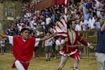 Per la cronaca, a portare in contrada il “cencio” è stata la Giraffa grazie a Tale e Quale (quello nella foto in alto, con il 17 dipinto sui lombi) montato dal freddo e tattico Tittia, che ha vinto in rimonta sulla Chiocciola. 36 cm al photofinish che hanno trasformato in disperazione la gioia sfrenata dei contradaioli più frettolosi. Sempre per la cronaca, anche il Palio dell’Assunta è stato vinto da Tittia, o meglio dal suo cavallo Remorex, scosso. Ancora per pochi centimetri, ma questa volta con i colori della Selva.PSIn realtà sono due i pali che si corrono a Siena, uno ai primi di luglio (Palio della Madonna di Provenzano, il nostro) e uno a metà agosto (Palio dell’Assunta) e vi prendono parte 10 delle 17 contrade in cui si divide la città, sette a rotazione fra quelle che non hanno corso in precedenza e tre scelte dalla sorte.