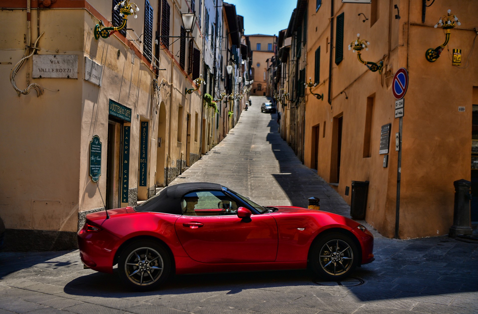Destino, dunque, che venti anni dopo quella fatale indecisione, sulla MX-5 mi ci sia trovato per vivere una storia eccezionale. Emozionato e stupito che nel baule ci fosse sufficiente posto per stipare un doppio bagaglio necessario a trascorrere cinque giorni fuori casa.Come ogni prima volta, anche il “mio” Palio meritava una compagna d’eccezione e la MX-5 mi sembrava dunque una scelta pertinente e non solo per il passato che ci legava. Anche lei con una lunga storia alle spalle, colorata come le casacche dei fantini, slanciata e muscolosa come un cavallo. E poi, proprio come i mezzosangue da Palio che si cavalcano “a pelo”, senza sella, la MX-5 si guida aperta, con la testa che tocca il cielo.1.5 LITRI POSSONO BASTARE