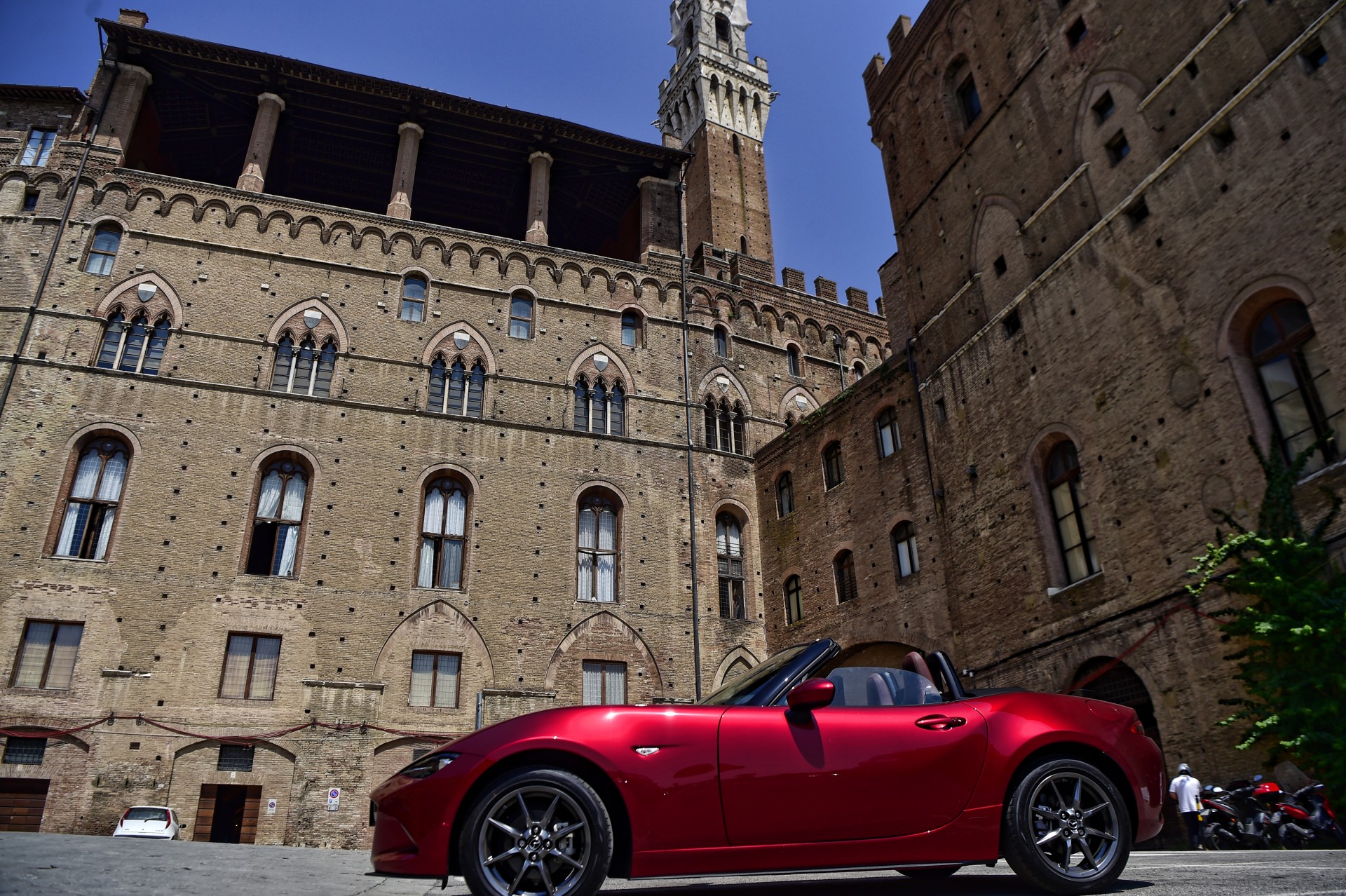 La versione con cui abbiamo raggiunto Siena e girato fra le colline che la circondano è la mite 1.5 Roadster Skyactiv-G Exceed con motore a benzina, quattro cilindri DOHC 16 valvole, da 132 cv a 7.000 giri e 152 Nm a 4.500 giri. Prezzo a partire da 28.550 euro, che diventano 30.350 per il nostro allestimento. In alternativa, c’è la prestante 2.0 da 180 cv, 205 Nm a 4.000 giri e prezzo a partire da 30.250 euro. Direi quindi che al “1,5 litri possono bastare” del titolo si potrebbe aggiungere “se ci si accontenta…”.