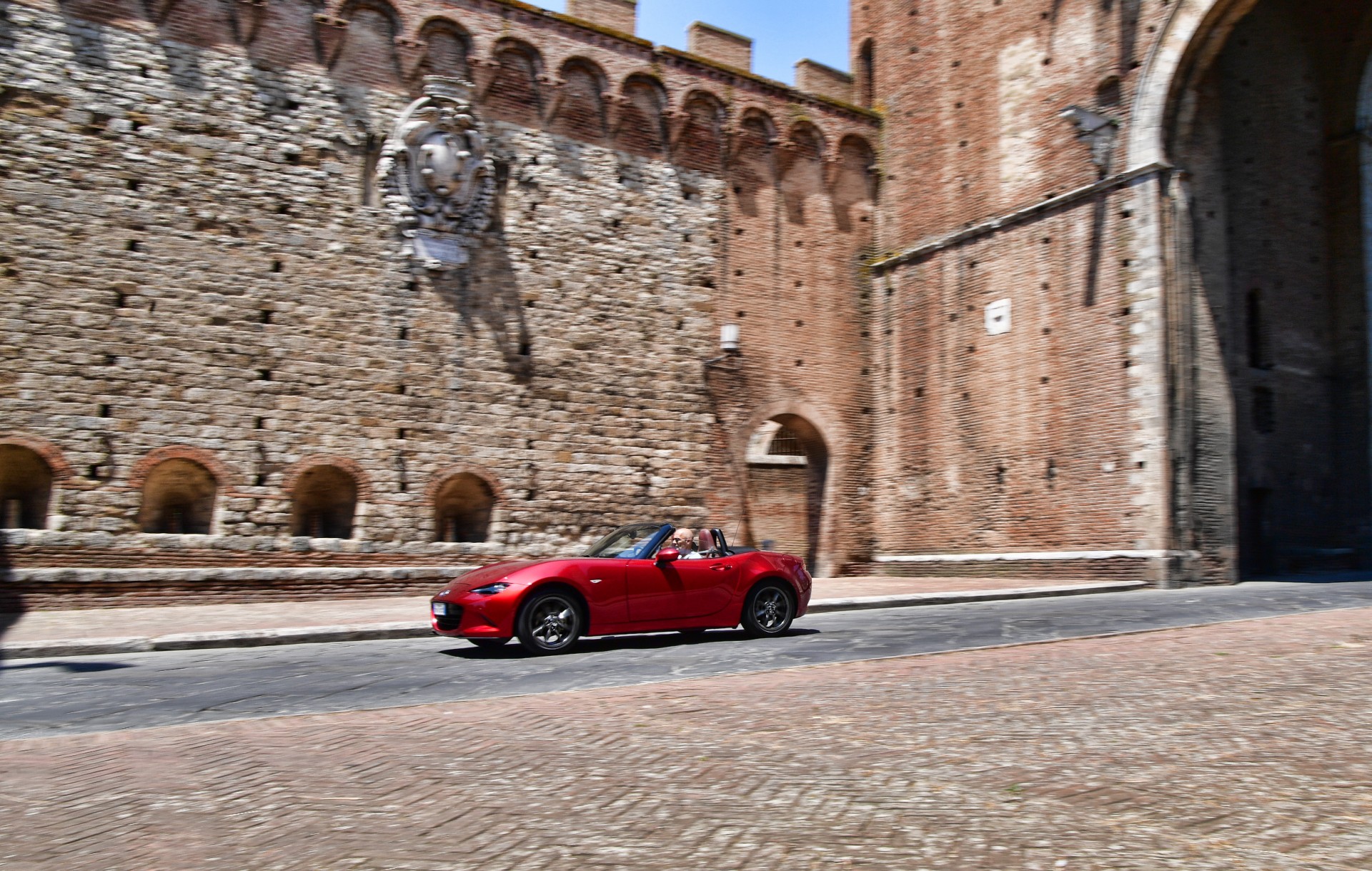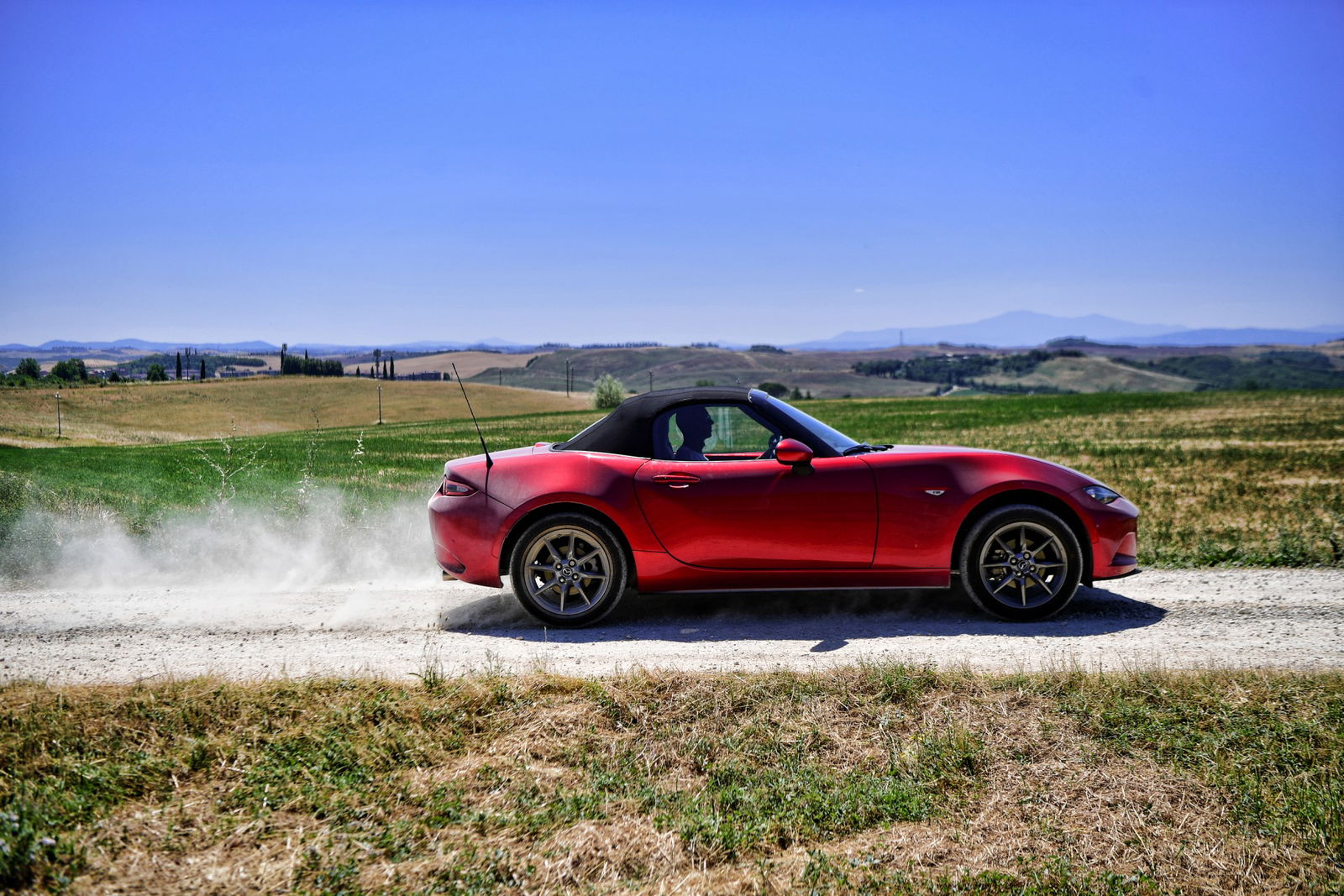 La versione con cui abbiamo raggiunto Siena e girato fra le colline che la circondano è la mite 1.5 Roadster Skyactiv-G Exceed con motore a benzina, quattro cilindri DOHC 16 valvole, da 132 cv a 7.000 giri e 152 Nm a 4.500 giri. Prezzo a partire da 28.550 euro, che diventano 30.350 per il nostro allestimento. In alternativa, c’è la prestante 2.0 da 180 cv, 205 Nm a 4.000 giri e prezzo a partire da 30.250 euro. Direi quindi che al “1,5 litri possono bastare” del titolo si potrebbe aggiungere “se ci si accontenta…”.