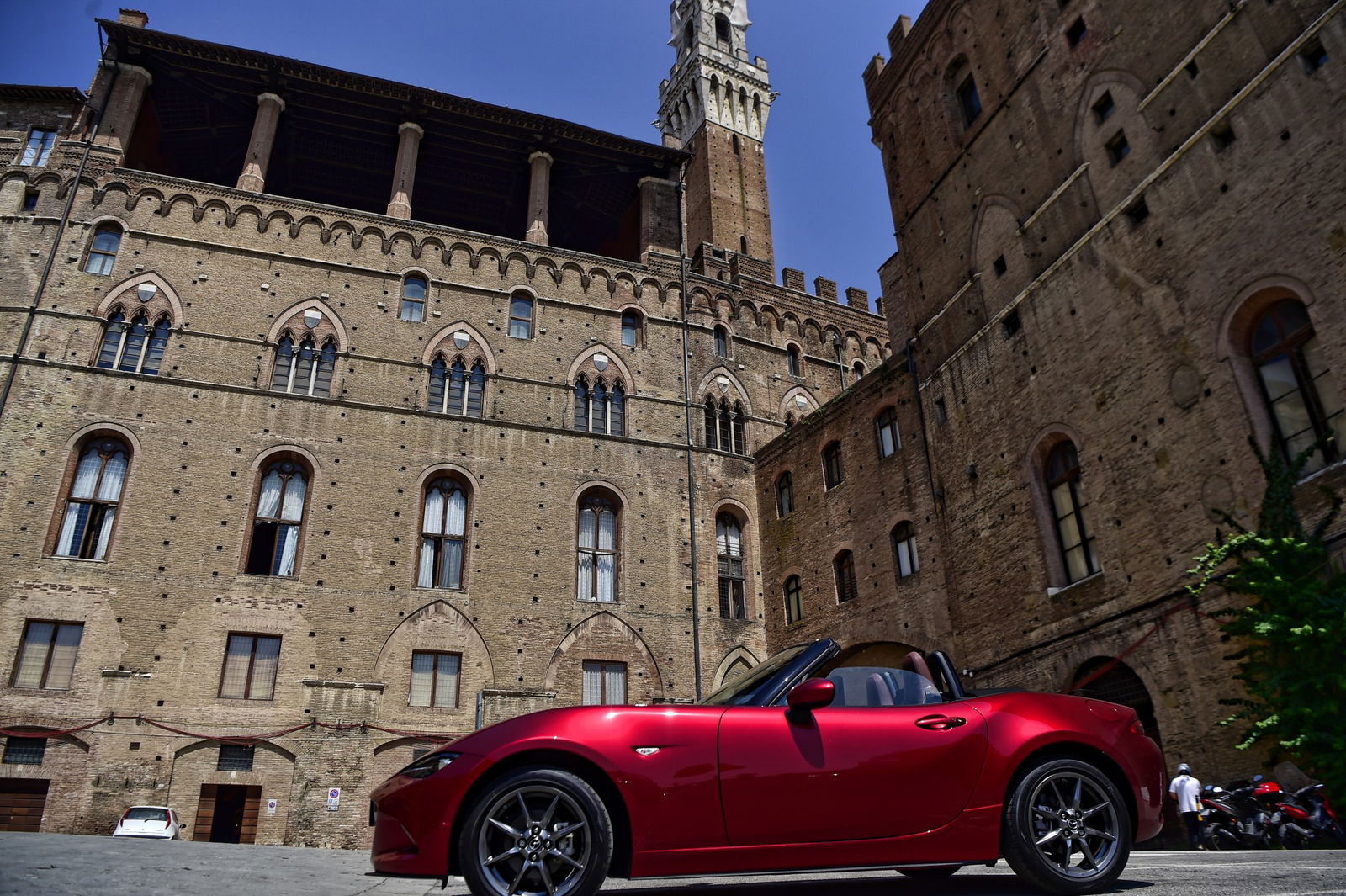 Destino, dunque, che venti anni dopo quella fatale indecisione, sulla MX-5 mi ci sia trovato per vivere una storia eccezionale. Emozionato e stupito che nel baule ci fosse sufficiente posto per stipare un doppio bagaglio necessario a trascorrere cinque giorni fuori casa.Come ogni prima volta, anche il “mio” Palio meritava una compagna d’eccezione e la MX-5 mi sembrava dunque una scelta pertinente e non solo per il passato che ci legava. Anche lei con una lunga storia alle spalle, colorata come le casacche dei fantini, slanciata e muscolosa come un cavallo. E poi, proprio come i mezzosangue da Palio che si cavalcano “a pelo”, senza sella, la MX-5 si guida aperta, con la testa che tocca il cielo.1.5 LITRI POSSONO BASTARE